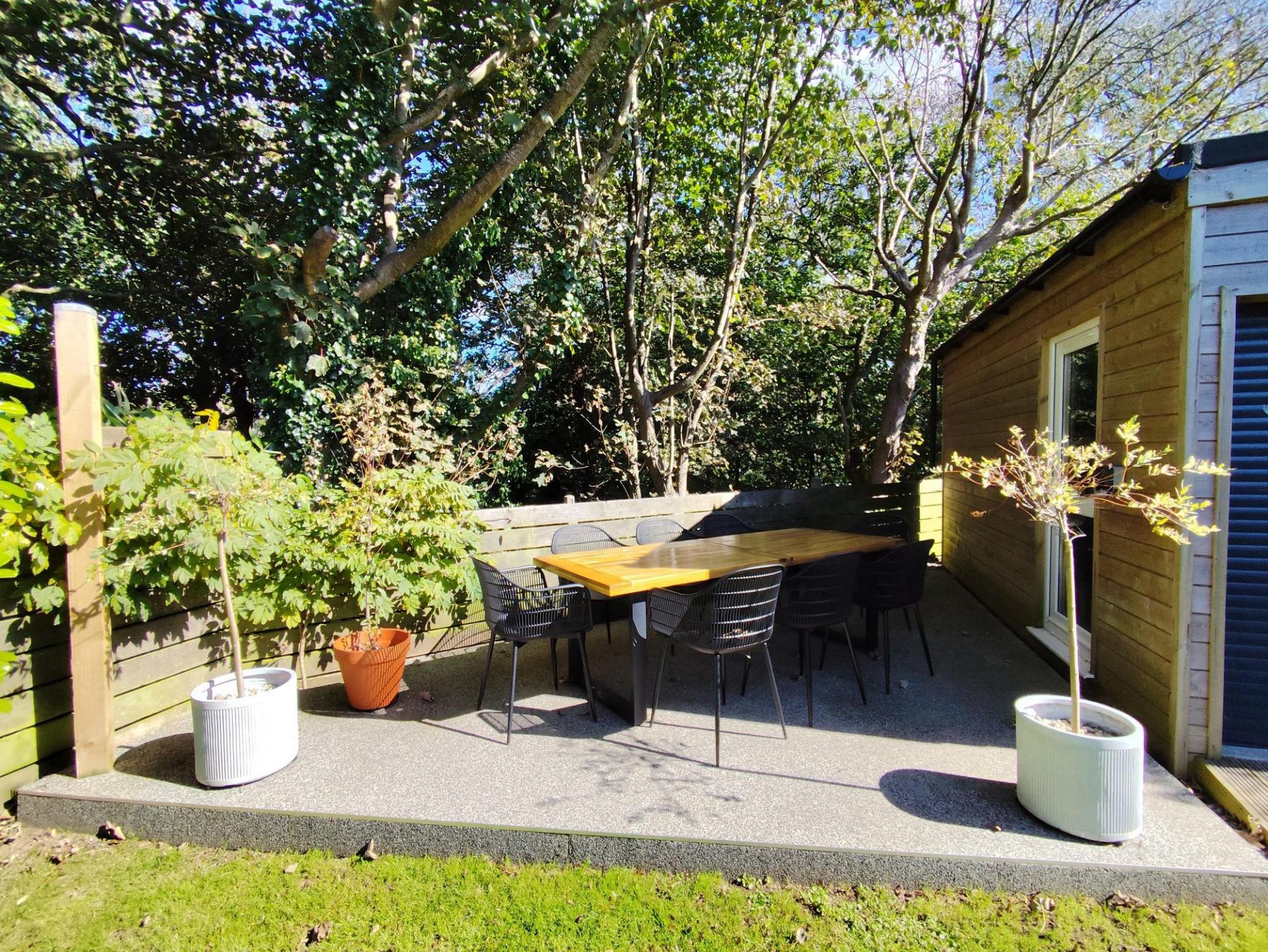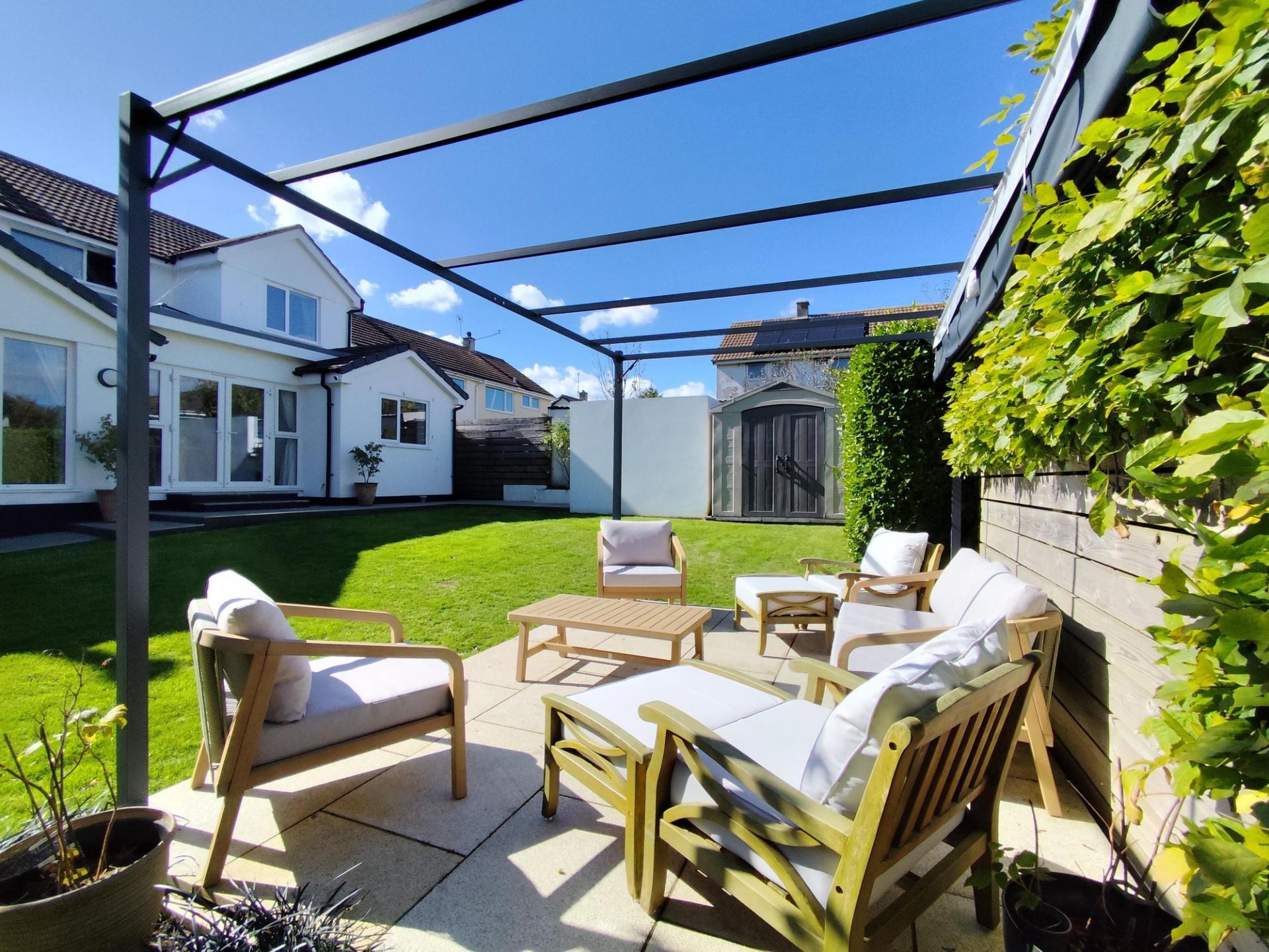 - LARGE GARDENS WITH TWO SUNTRAP PATIOS AND WOODLAND BACKDROP