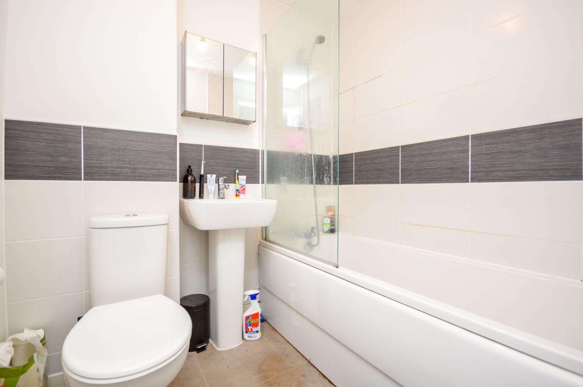 Upstairs, you'll find two generous double bedrooms, both carpeted and flooded with natural light from large UPVC double glazed windows. The family bathroom is fitted with a crisp white suite, complemented by part tiled walls for a clean and contemporary look. Allocated parking for one car.