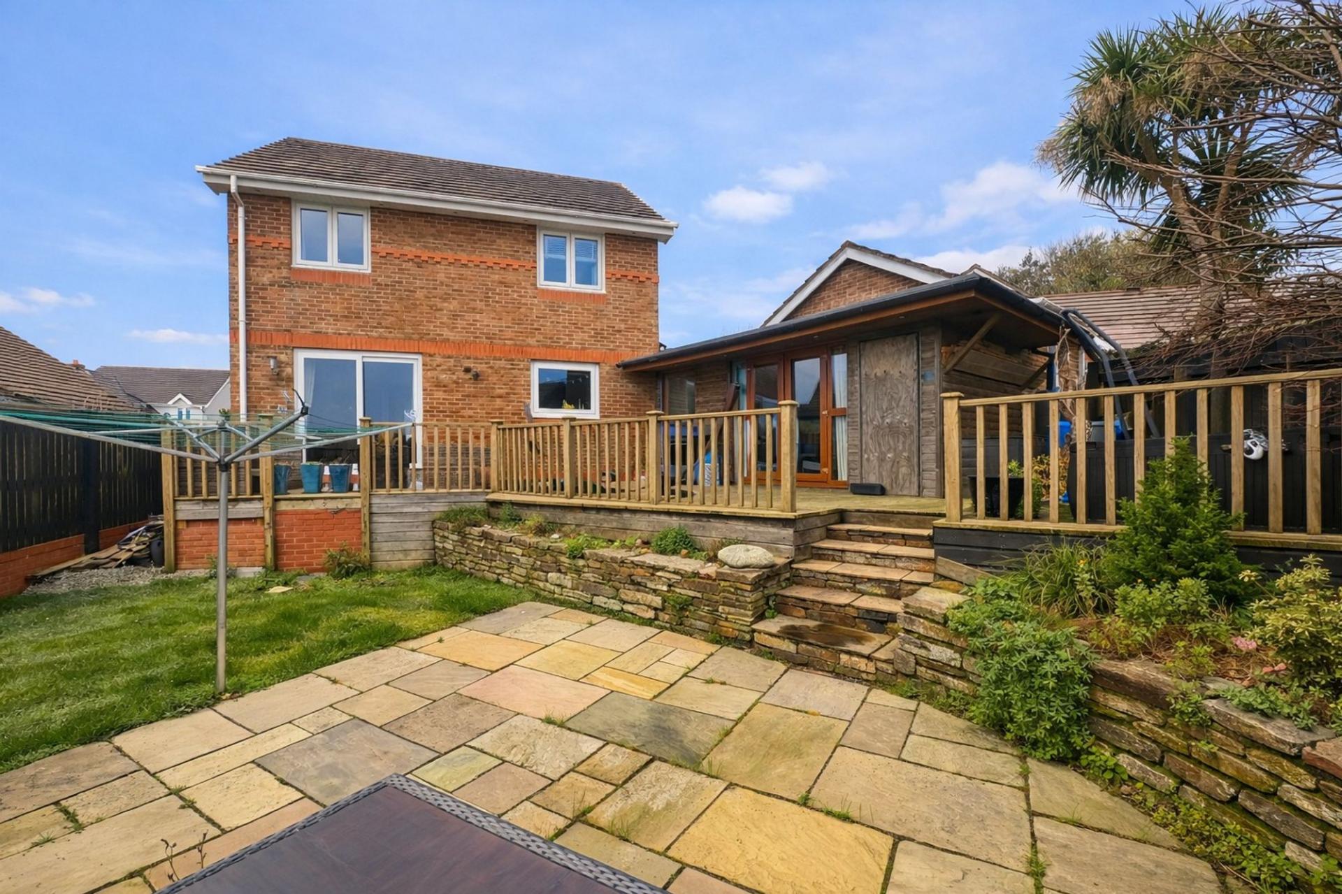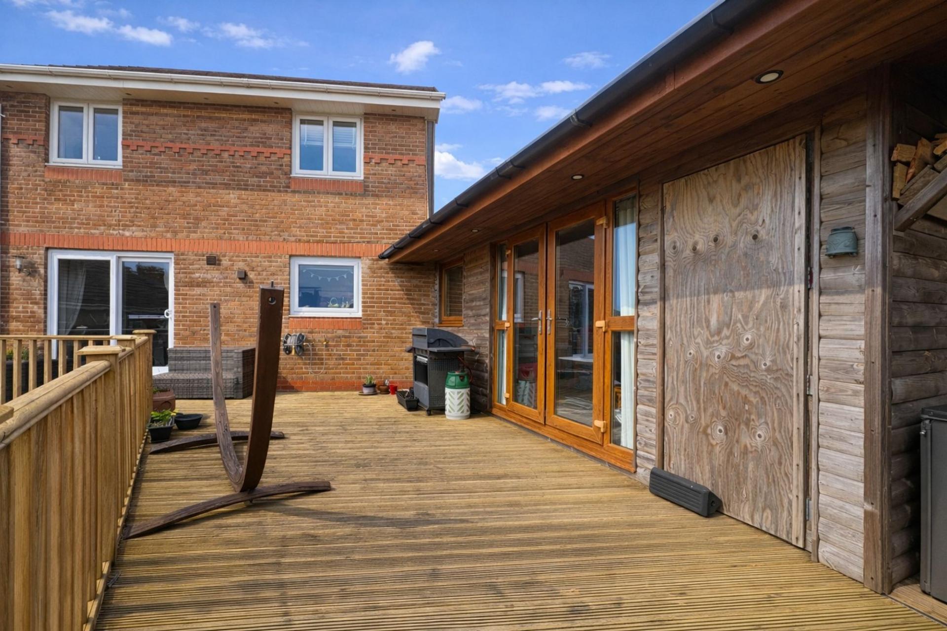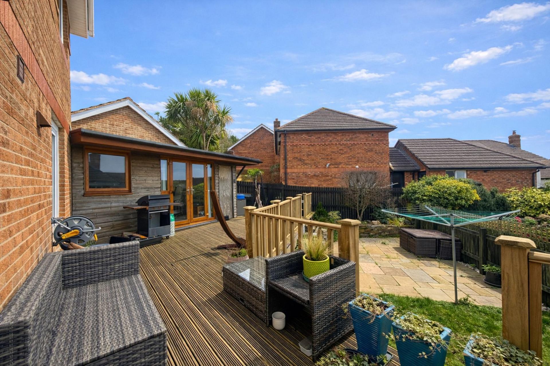 - SUNNY SOUTH-FACING REAR GARDEN WITH DECKING AND ENTERTAINING CABIN