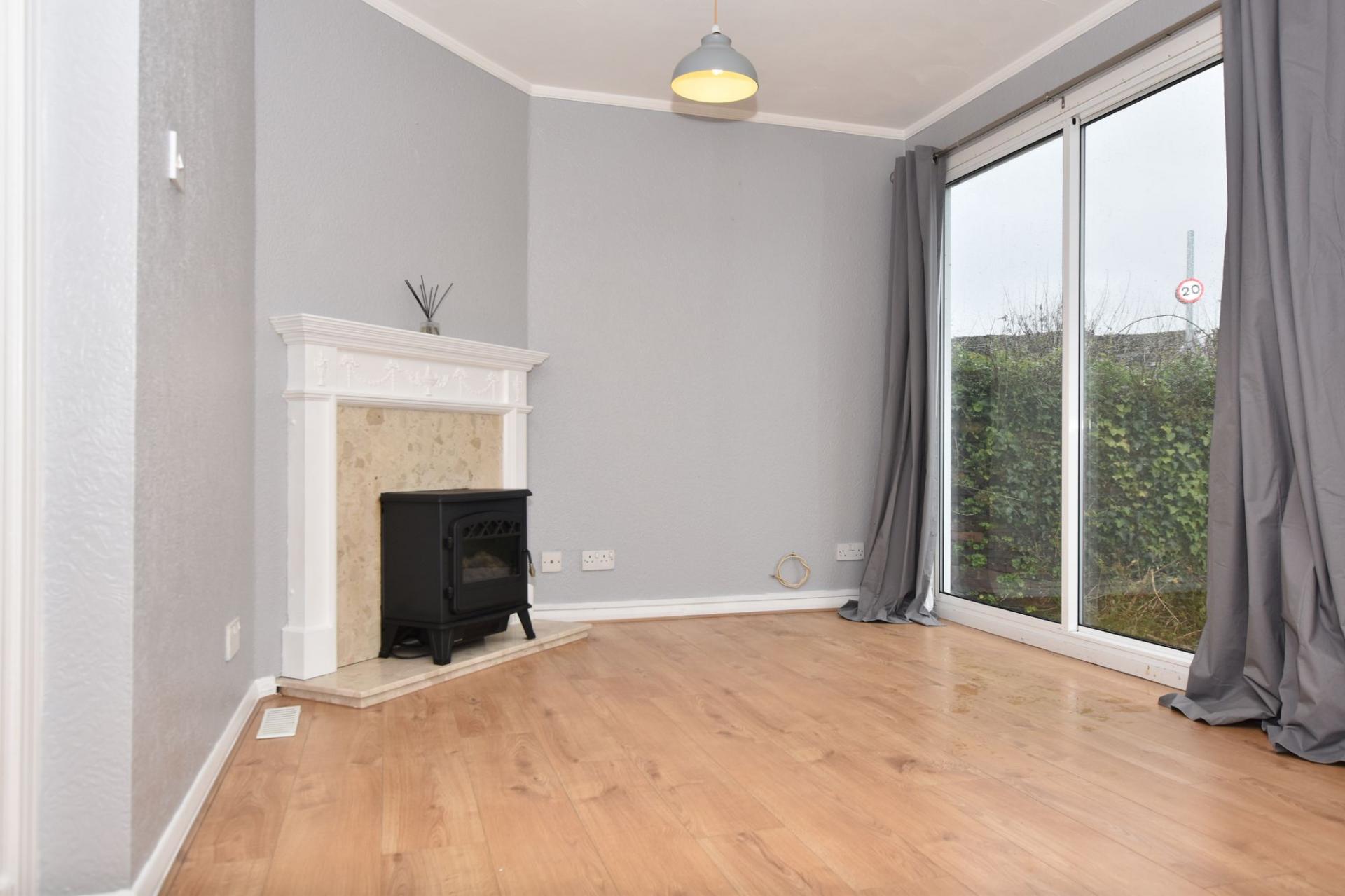 - BRIGHT LIVING ROOM WITH FIREPLACE AND GARDEN DOORS