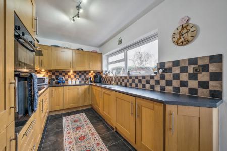 The front Entrance Porch lead into the inner Hallway with a Cloakroom & storage cupboard. Here you walk on through into the rearwards facing separate Dining Room / Study or even Ground Floor 4th Bedroom. Turning leftwards you have the Oak style Kitchen overlooking the rear Garden areas & neighbouring fields, giving a really nice view. A back door leads out to the Garden. The Kitchen has lots of cupboards & worksurfaces, with a high-level electric oven & grill, an electric hob, cooker hood, integral fridge/freezer, washing machine & dishwasher.