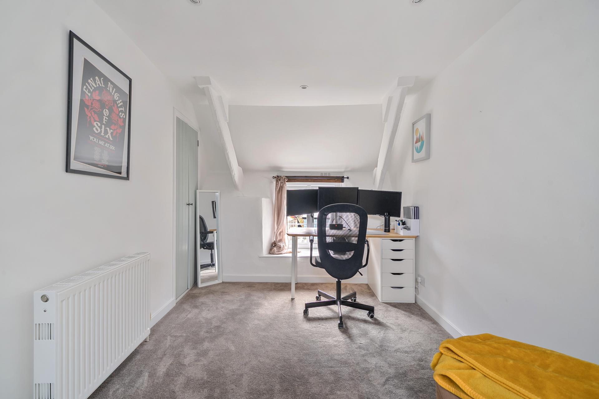 - Two double bedrooms upstairs – both with fitted storage, with the principal bedroom enjoying views t