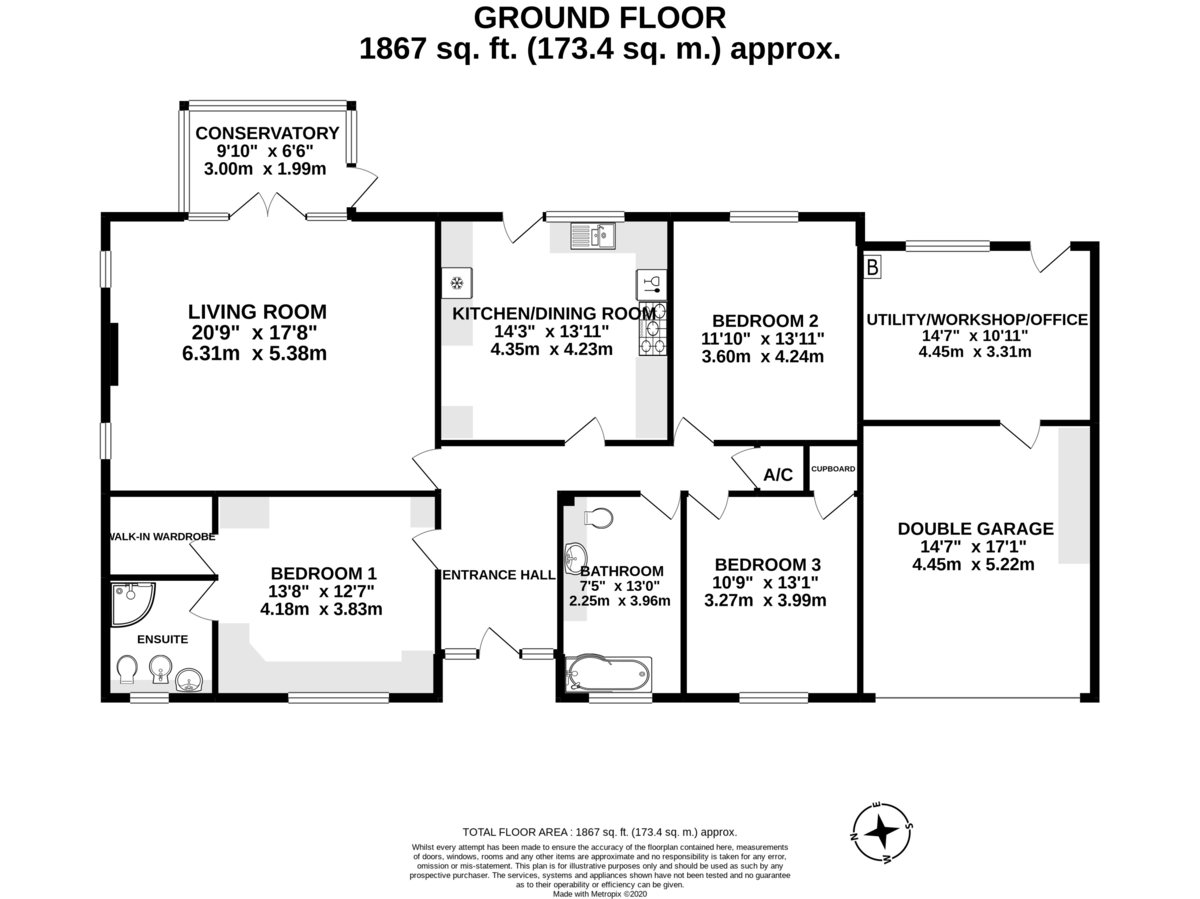 To the rear, the property boasts an attached double garage with power and lighting, an up-and-over door, and loft storage accessed via another drop-down ladder. A door at the back of the garage opens into a heated workshop/utility room, which houses the unvented hot water cylinder and the wall-mounted condensing system boiler serving the central heating and hot water. This room also provides direct access to the rear garden.