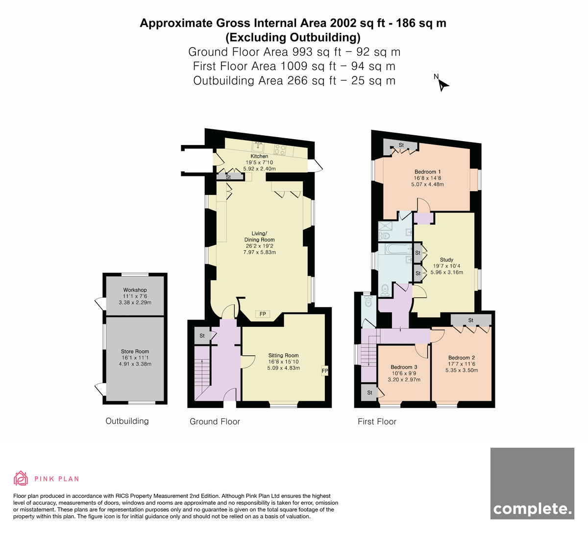 - Three double bedroms plus a study