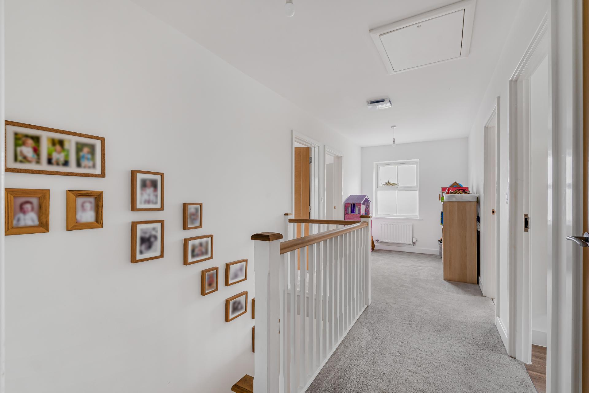 On the first floor there is a beautiful spacious landing, providing ample space for a reading corner or playroom. The landing provides access to the four light and airy double bedrooms, the principle of which has upgraded fitted wardrobes and an ensuite shower room comprising a large walk-in shower, w.c, hand wash basin and heated towel rail. Completing the upstairs accommodation is the family bathroom finished in soft neutral tones that create a relaxing atmosphere. Fitted with a modern three-piece suite comprising a panelled bath with glass screen and overhead shower, wall mounted wash basin, w.c. and heated towel rail.
