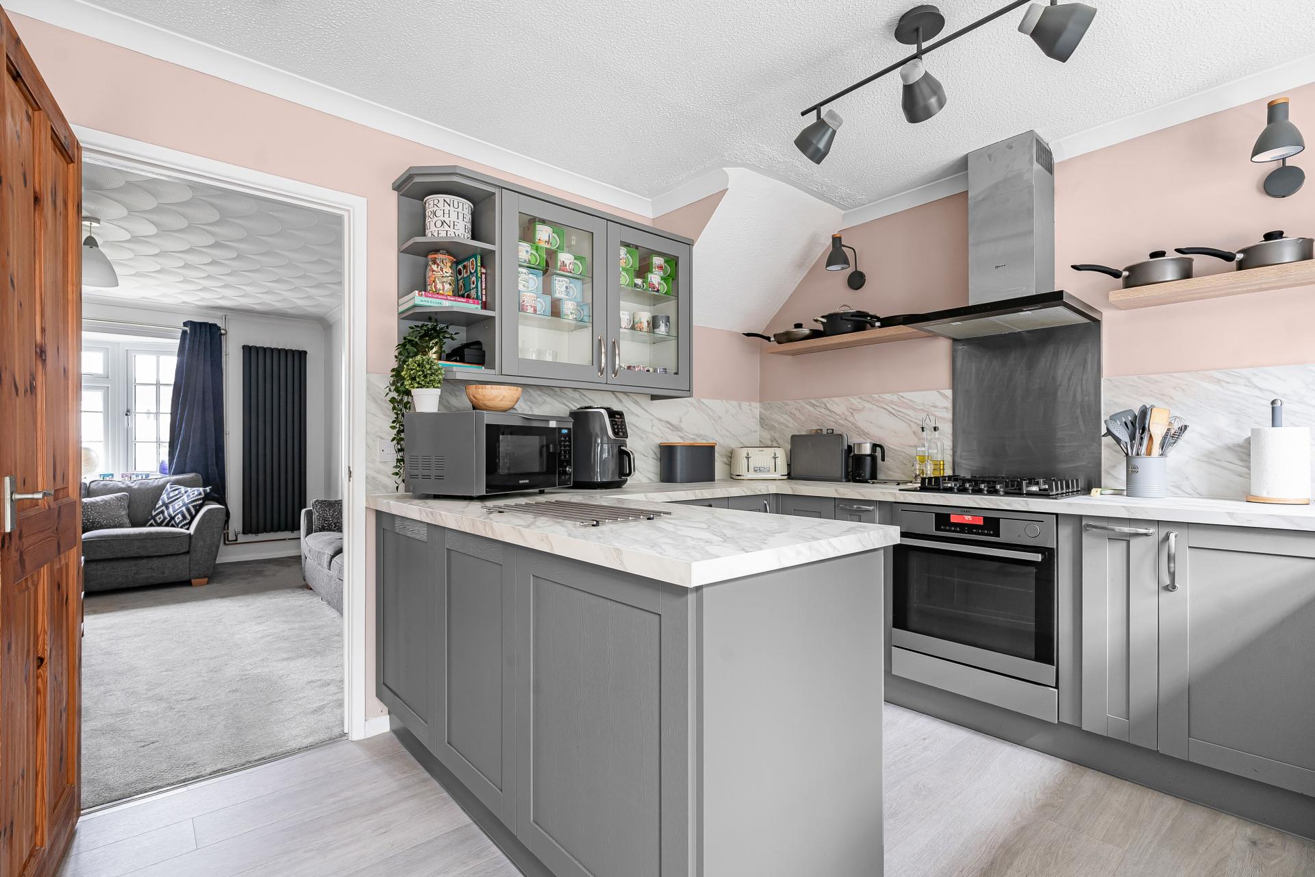 A well-presented three-bedroom home featuring a modern kitchen, spacious rear living room with French doors to the garde...