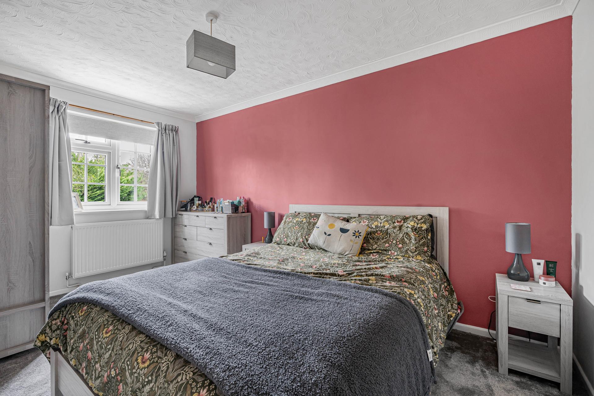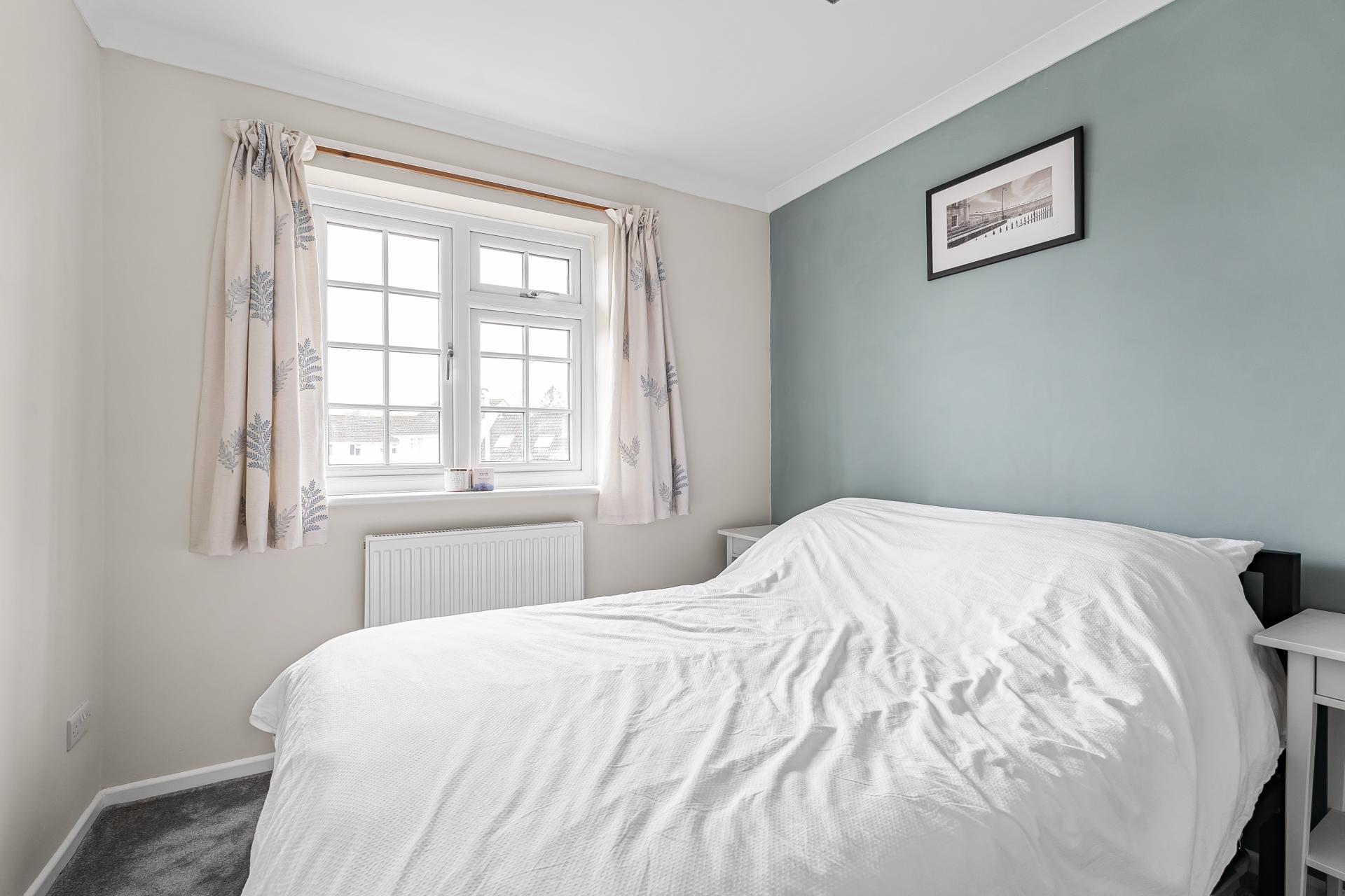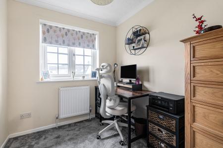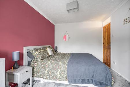 The first floor provides well-planned bedroom accommodation, ideal for families or those requiring flexible living space. The main bedroom is a generous double room benefitting from plenty of natural light, while there are two further bedrooms, including an additional double and a good-sized single room which could also serve as a home office, nursery or guest room. The accommodation is completed by a spacious family bathroom fitted with a modern white suite and attractive contemporary tiling.