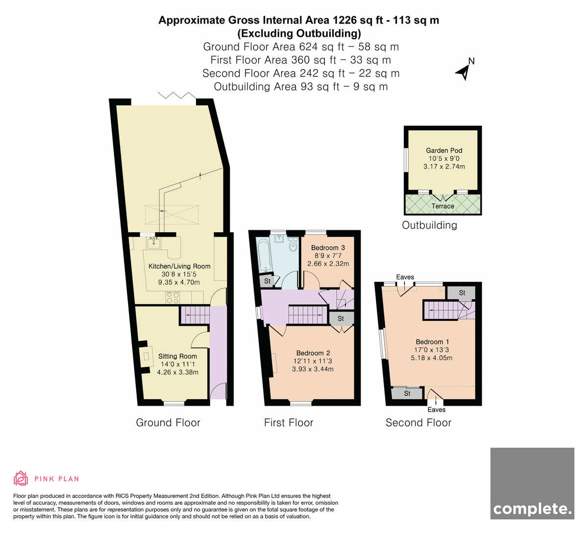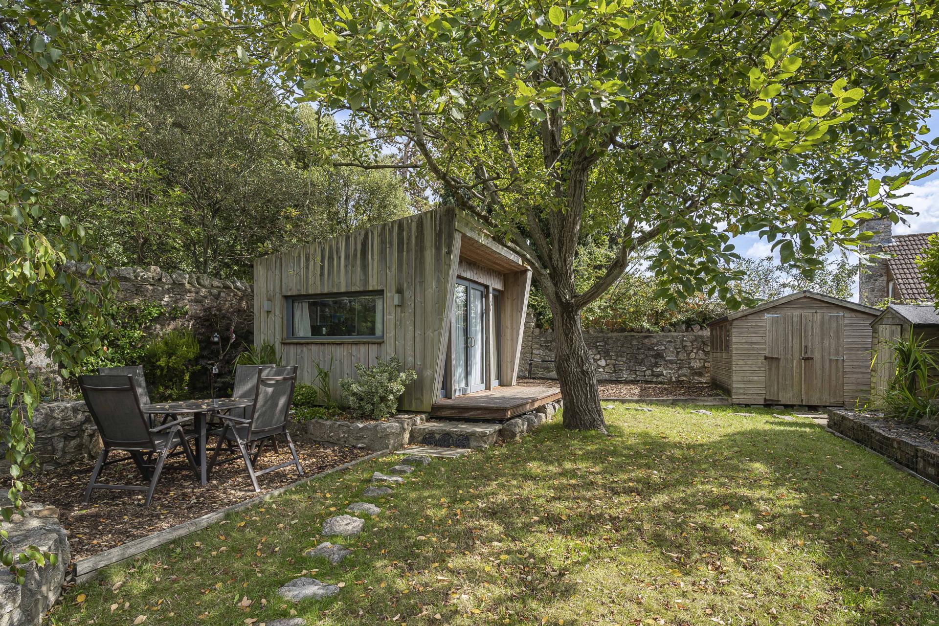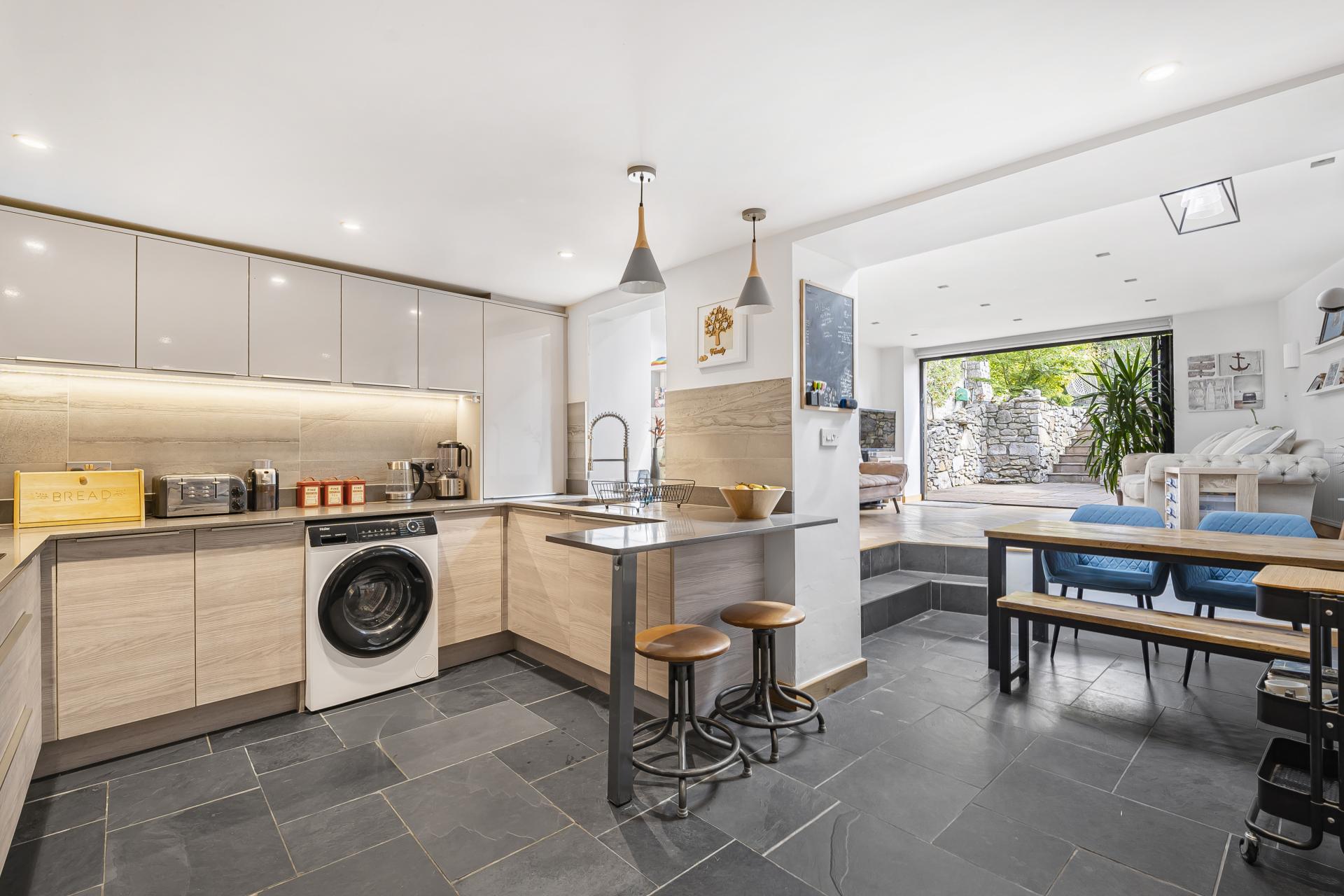This beautifully presented three-bedroom end-terrace cottage combines timeless period charm with stylish modern living. From the moment you step inside, the house feels warm and inviting, beginning with a cosy sitting room at the front of the property where exposed stonework, a rustic timber lintel and a log-burning stove create the perfect retreat for relaxing evenings. As you move through the house it opens up into an impressive open-plan kitchen, dining and living area, designed as the true heart of the home. The kitchen has been fitted with sleek cabinetry and integrated appliances, with a breakfast bar providing both additional workspace and a social hub, while the dining area flows effortlessly into a spacious family room with herringbone flooring, a striking feature wall and wide bi-fold doors that flood the space with light. Above, lantern windows and a sedum roof bring a sense of airiness and sustainability, making the space feel both contemporary and environmentally conscious. This is a room that seamlessly connects inside and out, creating the perfect setting for entertaining and everyday family life. Upstairs, the first floor offers two bedrooms, one a generous double overlooking the front, and the other a versatile single that could serve equally well as a nursery, home office or guest room. A tastefully designed family bathroom completes this level, featuring metro tiling, a shower over the bath and elegant period-style fixtures. The top floor is dedicated entirely to the principal bedroom, an impressive sanctuary with vaulted ceilings, exposed beams and a reclaimed timber feature wall, combining rustic character with modern style while offering excellent storage within the eaves. The outside space is just as appealing, with a beautifully landscaped garden arranged across several levels. Immediately outside the bi-fold doors is a stone-paved terrace for al fresco dining, leading up through planted beds to a private lawned area. The garden is enclosed on one side by a traditional stone wall and on the other by mature hedging, giving both character and privacy. At the top of the garden sits a contemporary garden room with full-height glazing, perfect for use as a home office, studio, gym or quiet retreat, alongside a useful timber storage shed. With over 1,200 sq ft of accommodation, this home combines period character with modern design and a versatile layout that will suit families, professionals and couples alike. Its central location offers easy access to Chudleigh's shops, cafés and amenities, while Dartmoor National Park lies on the doorstep for weekend adventures and excellent transport links connect quickly to Exeter, Newton Abbot and beyond. This is a home that not only offers space and flexibility but also a lifestyle – equally suited to cosy winter evenings by the fire as it is to summer entertaining in the garden – making it a truly special find.