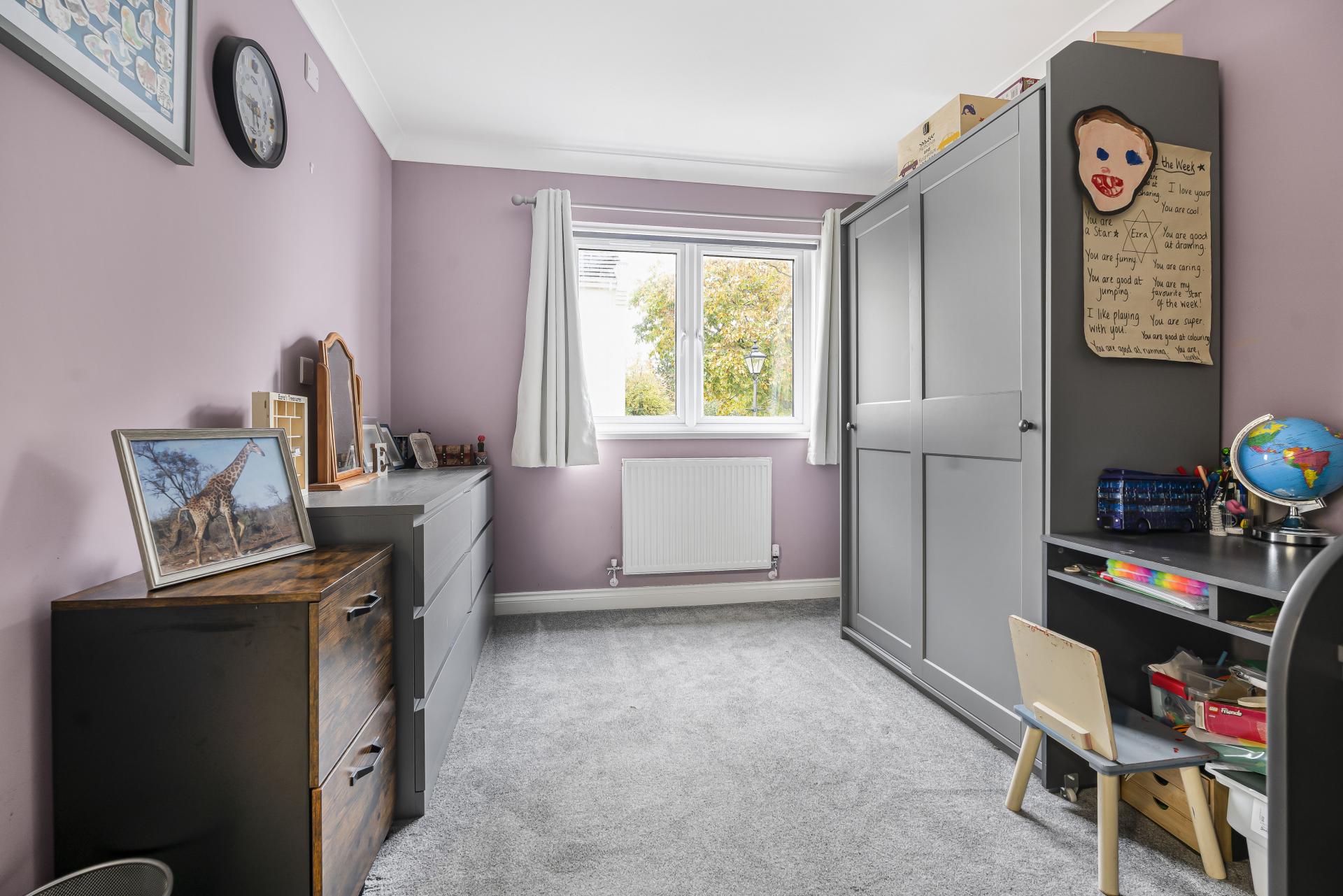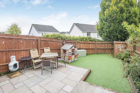 The low-maintenance rear garden has been landscaped and is perfect for busy lifestyles, with a generous patio area for outdoor dining and a tidy astro turf lawn. There's space for a shed, and side access makes storing bikes or bins hassle-free. The property also benefits from two allocated parking spaces.