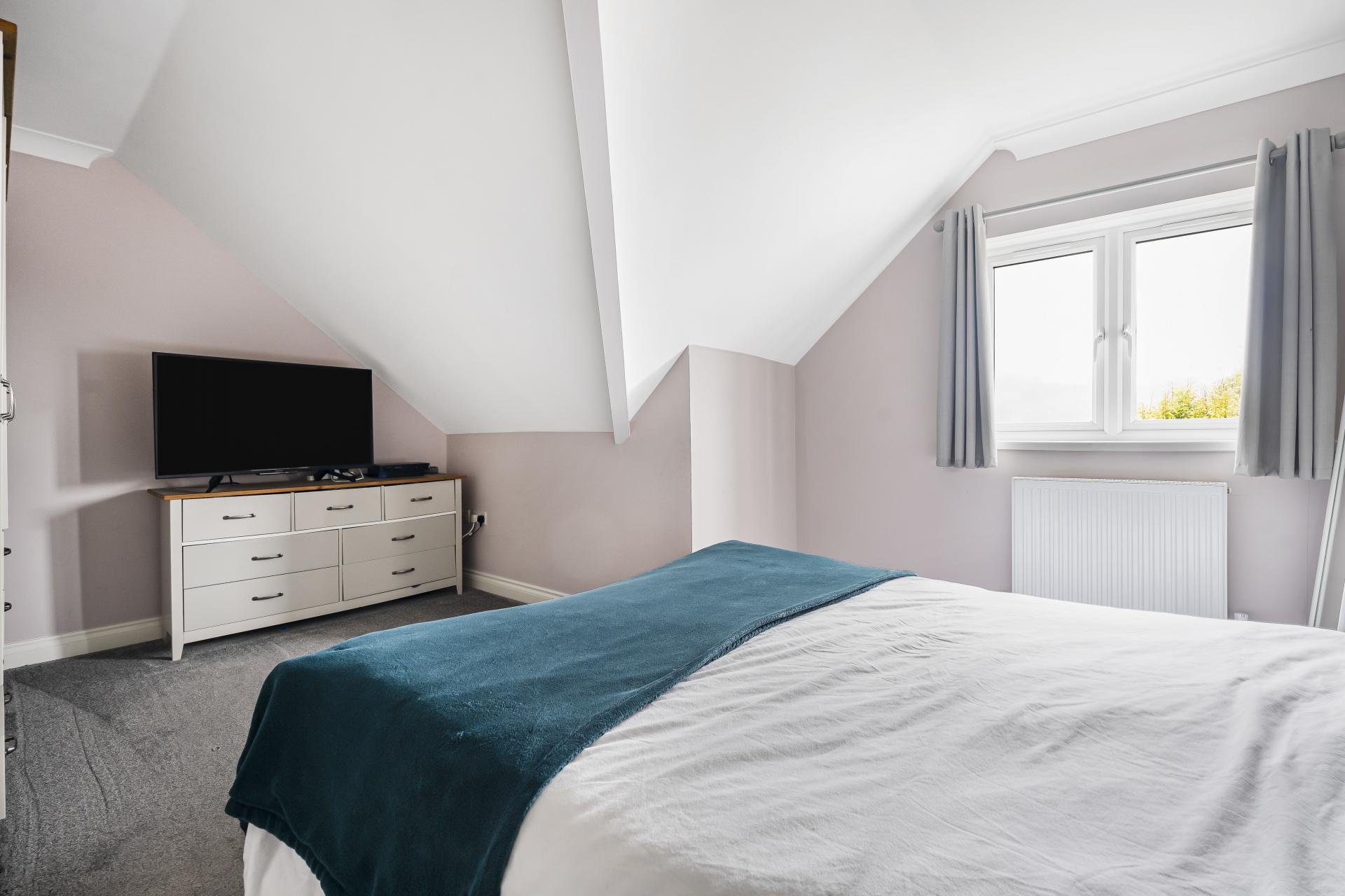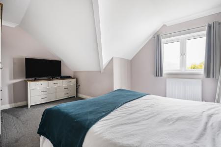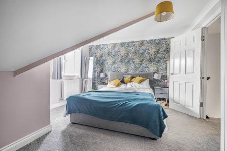 The top floor features a further two generous double bedrooms, both enjoying beautiful countryside views, a serene and scenic outlook. A sleek and well-appointed family shower room completes this level, offering modern fixtures and a luxurious walk-in shower.
