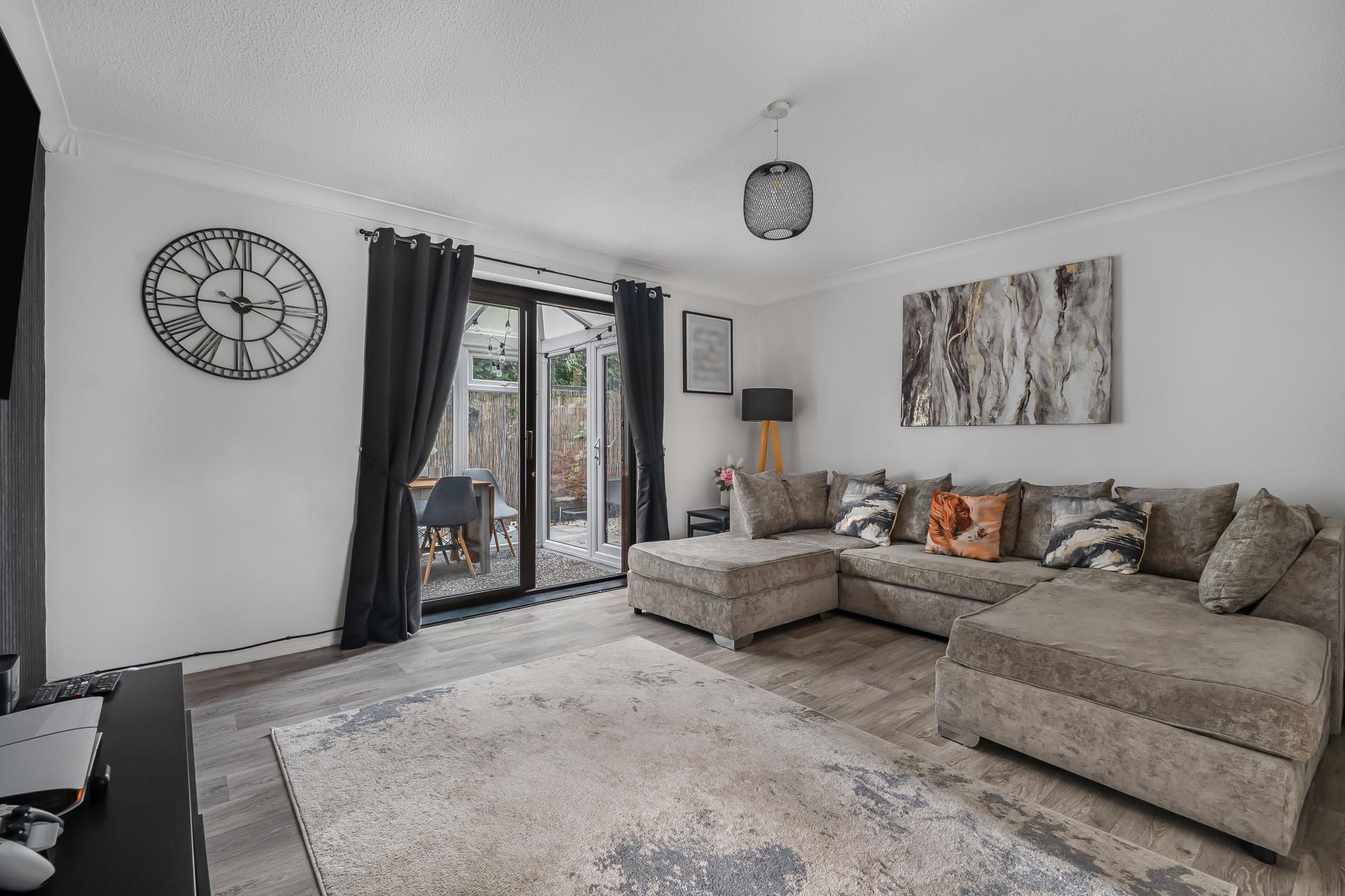 To the rear of the house is the main Open Plan Living Dining Room, a spacious area, ample room for a dining table & leading out to a Conservatory & thus the rear private Courtyard Garden, making a great space for outside 'chill out'.