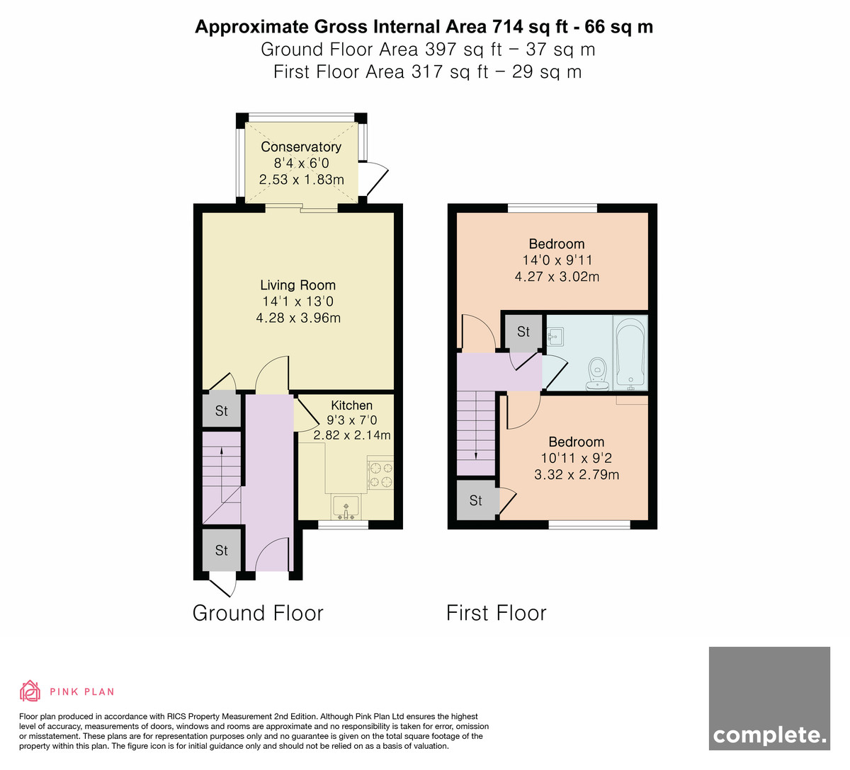 Upstairs you will find 2 Double Bedrooms, one overlooking the front & the other the rear Garden, with a central internal Bathroom.