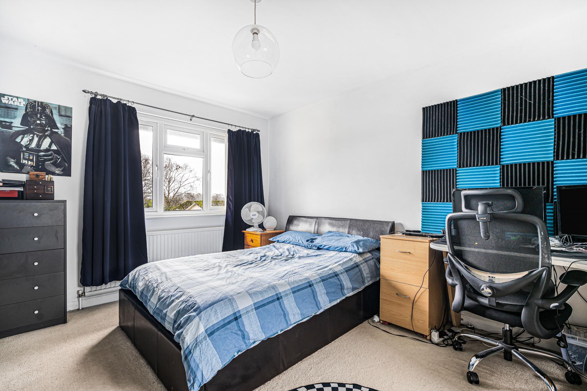 The guest bedroom is also a generous double, complete with fitted storage and its own en-suite facility.