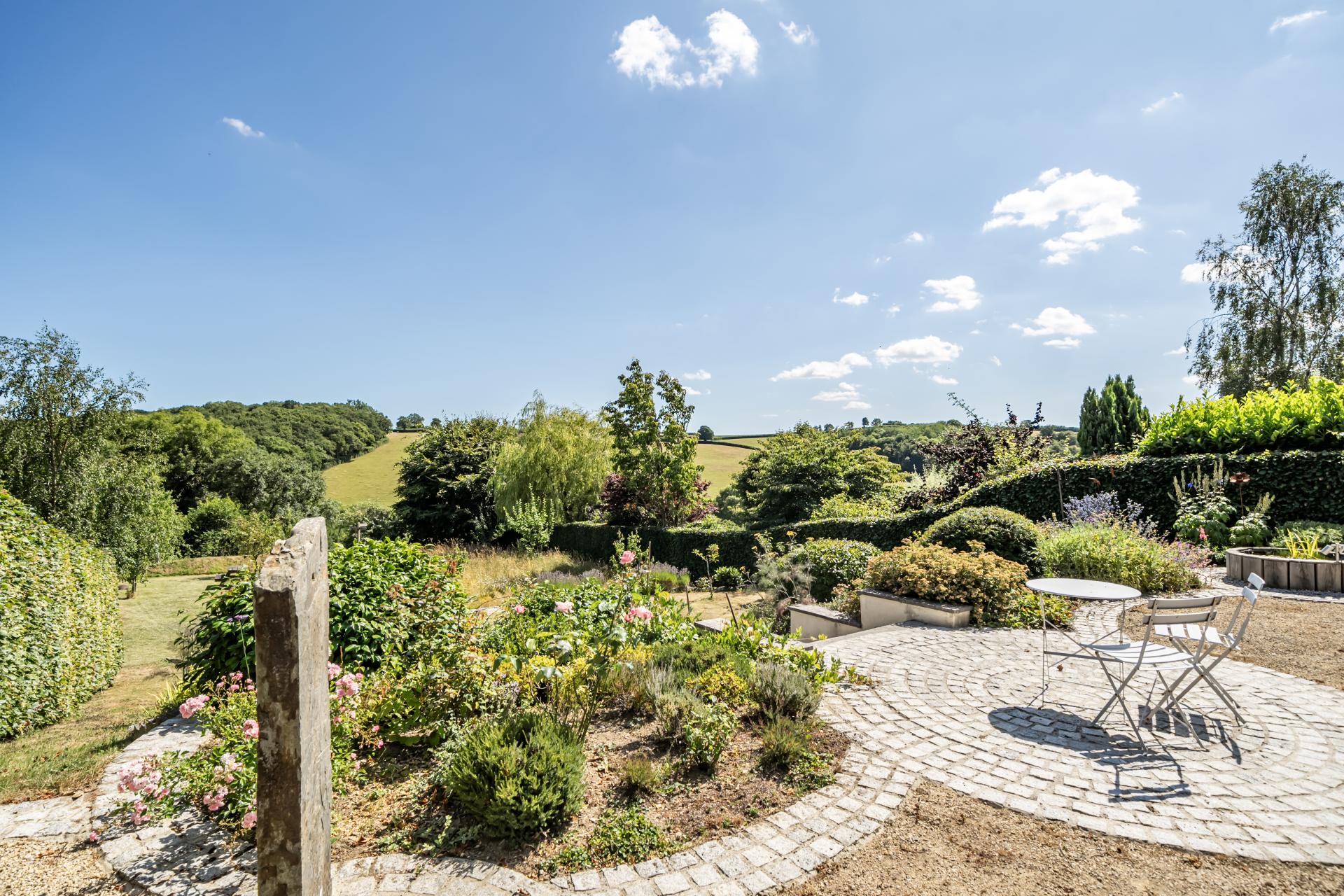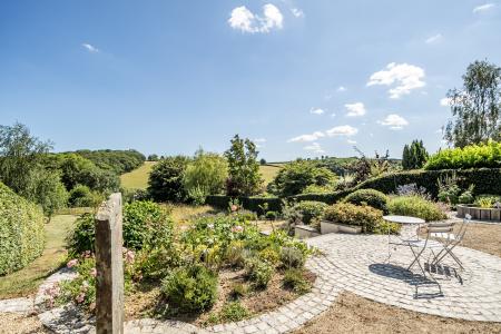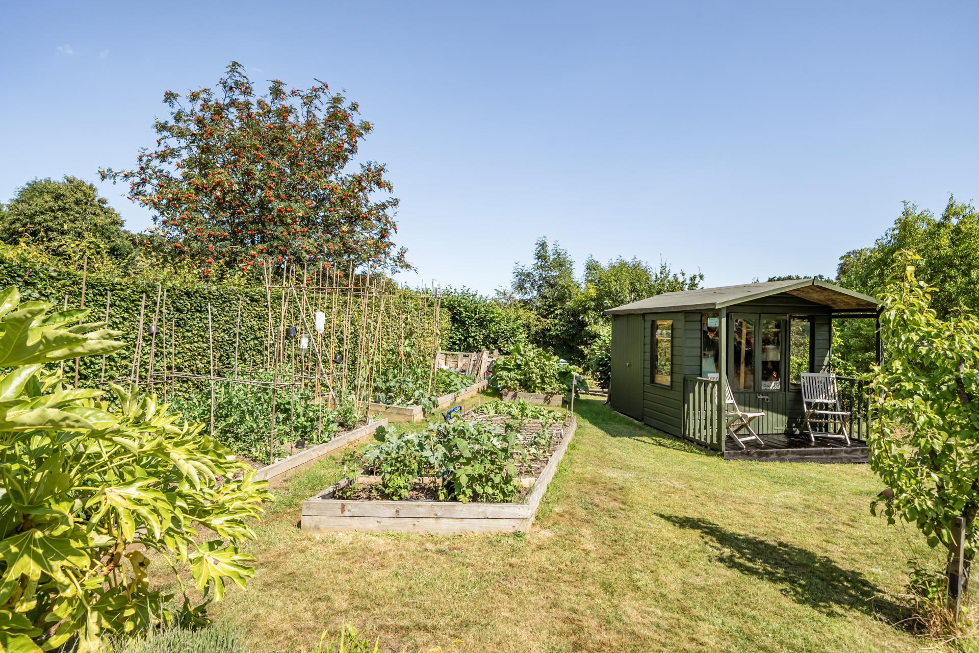 The rear garden is a true haven, featuring a circular patio, lawns bordered by vibrant planting, a wildflower meadow, raised beds for fruit and vegetables, and a charming summerhouse with rear storage. This tranquil outdoor space provides a stunning natural backdrop to an exceptional home.