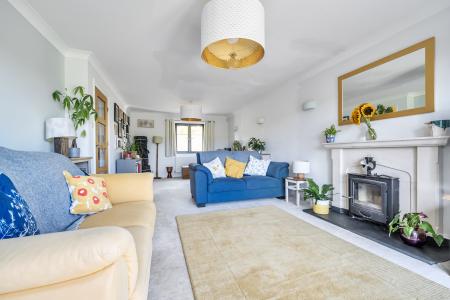 For those working from home, the study offers a quiet, practical space. The sitting room is a cozy retreat with an Adams-style fireplace, wood-burning stove, and French windows opening to the rear raised terrace.