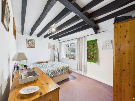 BEDROOM TWO Another double bedroom with window to front overlooking the garden, beamed ceilings and radiator.