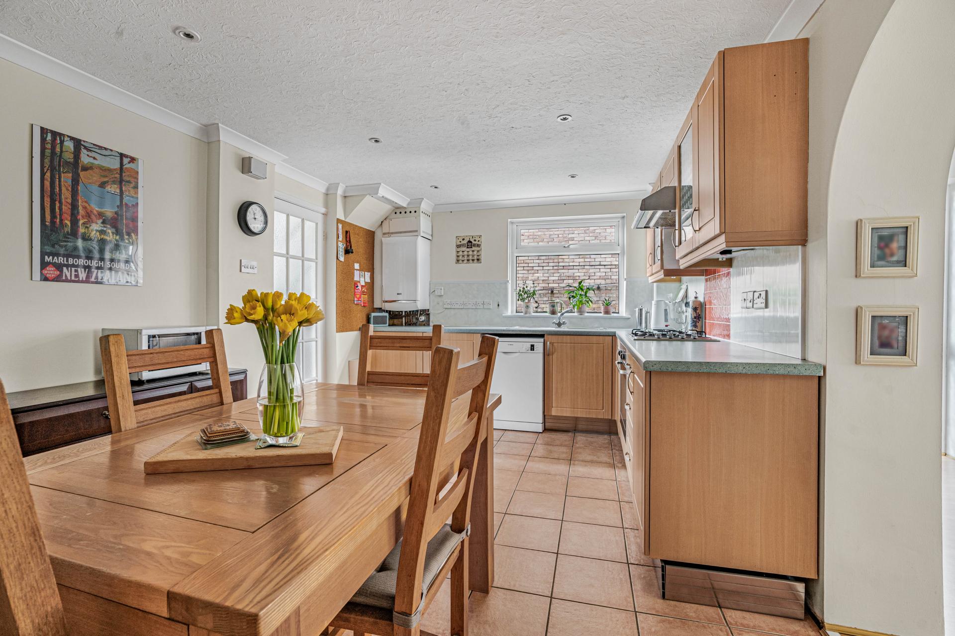 To the rear, the kitchen diner forms the heart of the home. Spacious and practical, it offers ample worktop and storage space along with plenty of room for a family dining table, making it perfect for everyday living and social occasions alike. The layout allows for easy interaction between cooking and dining areas, creating a sociable and functional environment.