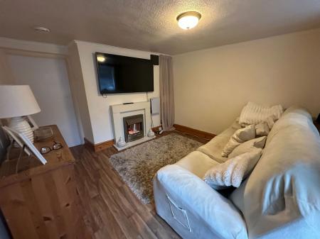 LOUNGE - 3.15m x 3.02m (10'4" x 9'10") A cosy lounge, fire surround with inset electric fire, uPVC window to front of property, radiator.