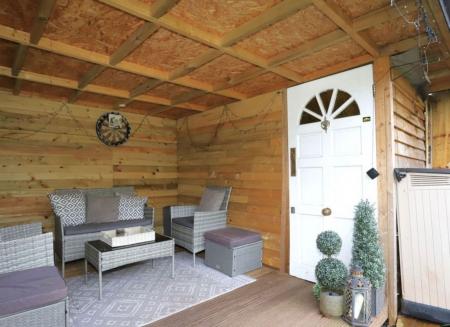 OUTSIDE A good sized enclosed garden which is level and laid largely to lawn with a useful covered summer house and storage. The garden is enclosed by timber fencing and enjoys an open aspect over the surrounding area.