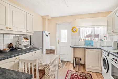 The Kitchen, with door outwards to a conservatory & the rear Garden does have space for a small table with ample room for a modern Kitchen, albeit there is currently lots of cupboards, work surfaces, sink, plumbing for a washing machine, space for fridge/freezer, electric oven, hob & cooker hood and a window to the rear.
