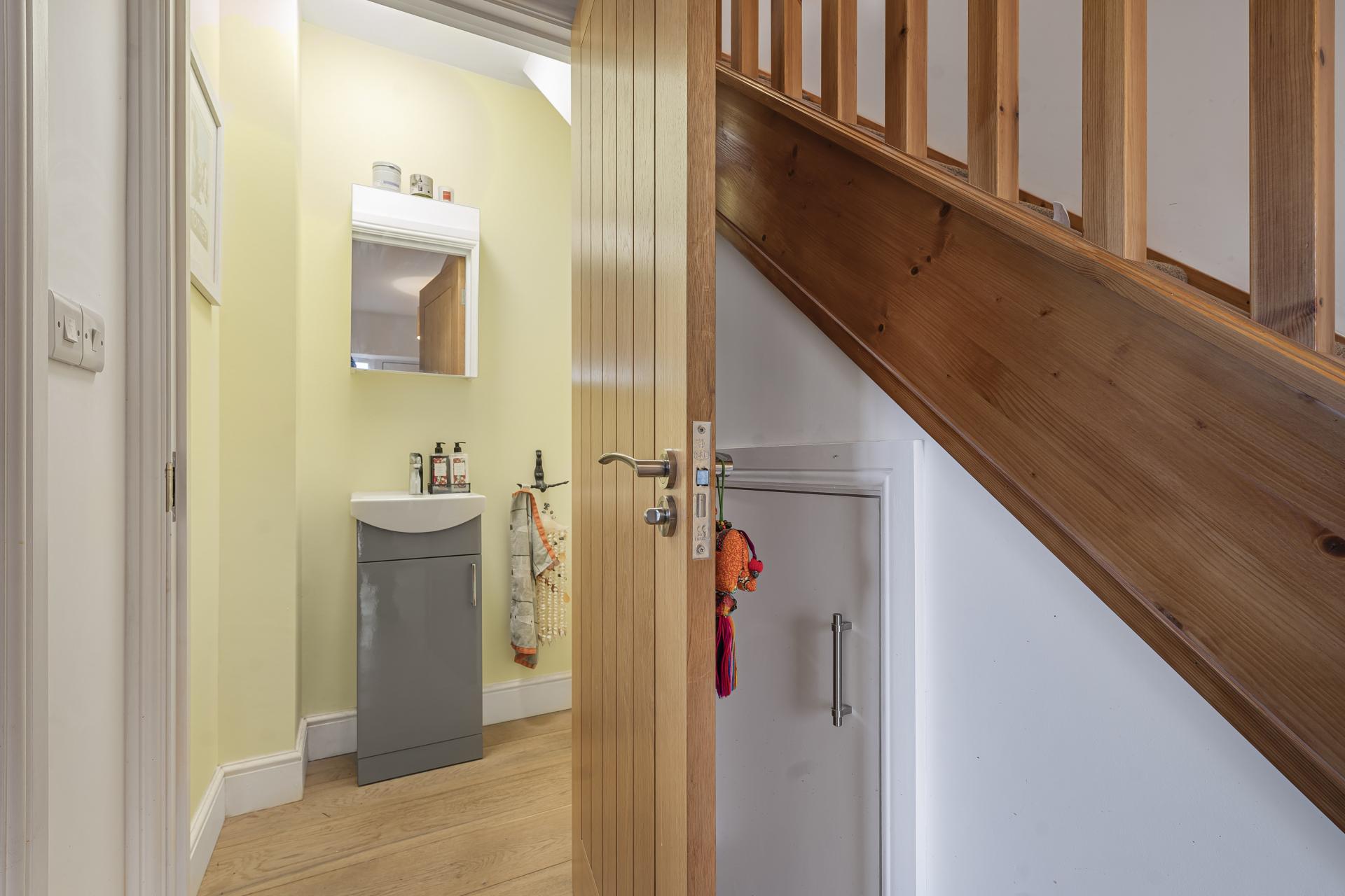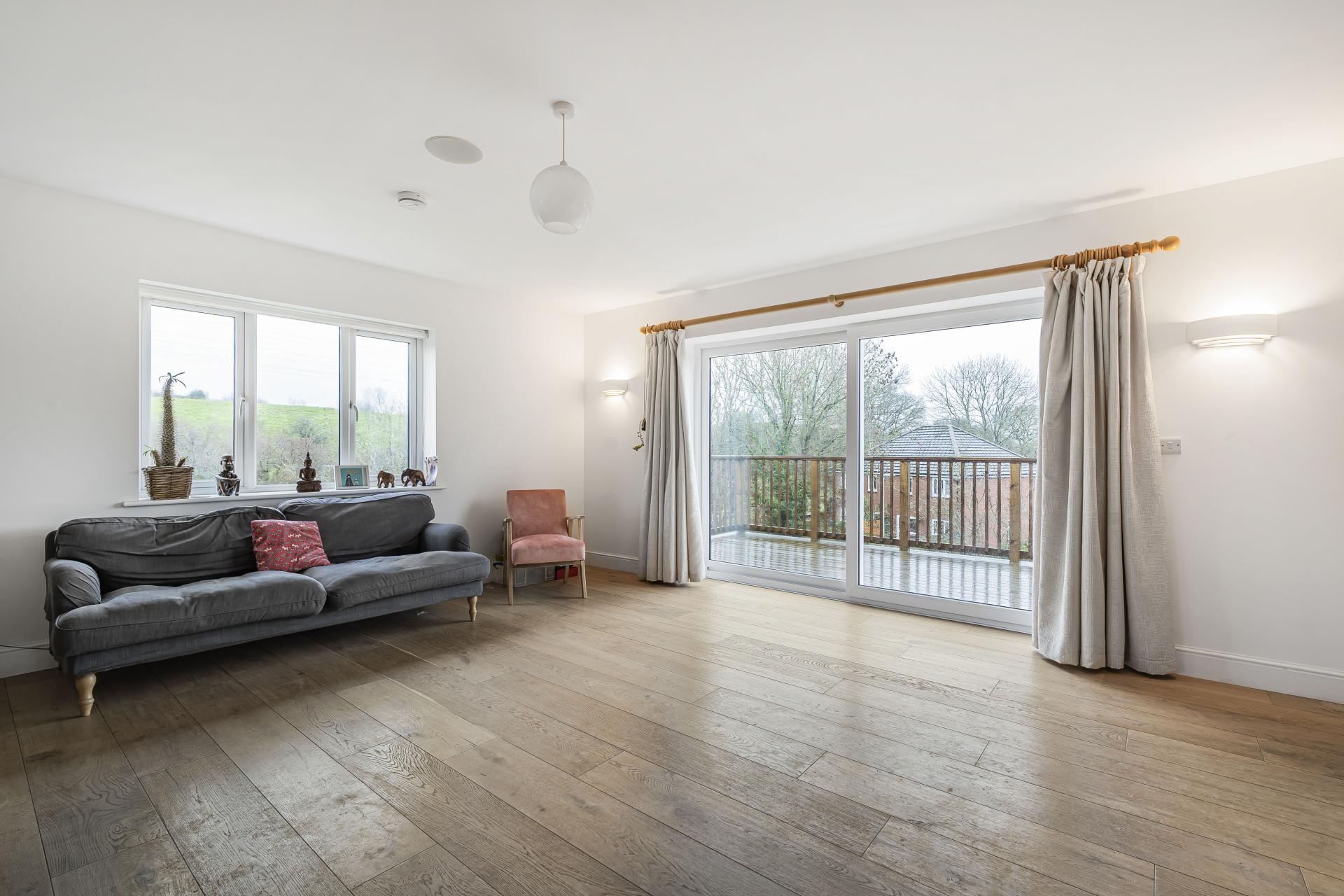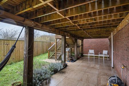 Externally, the property continues to impress with a large, sunny terrace accessed directly from the living area, ideal for outdoor dining and relaxation. At ground level there is a sheltered seating area, along with access to a substantial basement space. To the front, a good sized driveway provides ample off road parking.