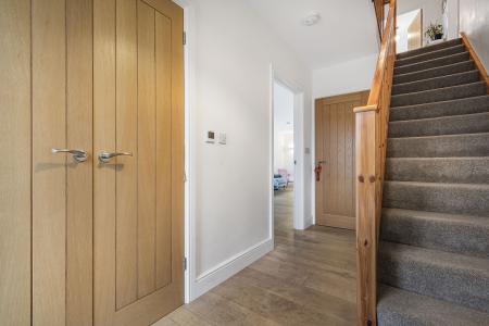 The heart of the home is a large open plan kitchen, living and dining area, fitted with top of the range appliances and designed for modern family life and entertaining. Additional ground floor accommodation includes a separate utility room, a downstairs WC, and access to the integral garage.