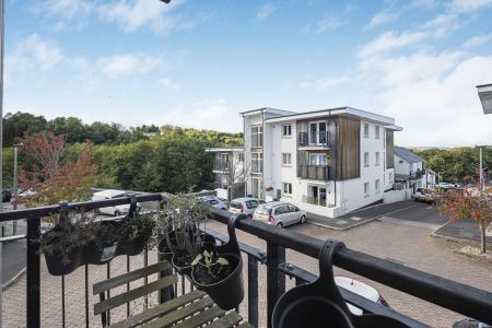Accessed via stairs the Entrance Hall, with storage cupboard, has a Bathroom to the left, two Double Bedrooms to the side & rightwards you will find the main Open Plan Live / Eat Space. Here the Living Area gives a spacious feel, with French doors that lead out to a Balcony, overlooking the front giving lots of natural light & an ideal space for sitting with the morning coffee or evening G&T!