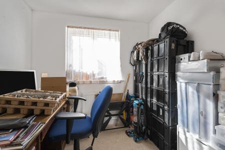 There is ample room for a dining table & chairs with a modern Kitchen area, plenty of storage cupboards, work surfaces, an electric oven, gas hob, cooker hood, dishwasher, washing machine, & space for a fridge freezer. A window overlooking the front adds extra light.