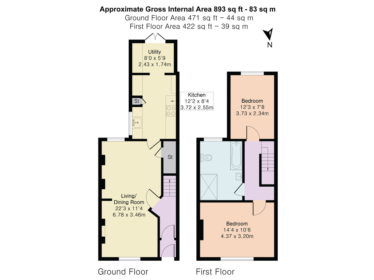 Upstairs, the first floor offers two generously sized double bedrooms, both tastefully decorated and well-proportioned. Completing the accommodation is a spacious and stylish bathroom featuring a sleek walk in shower unit.