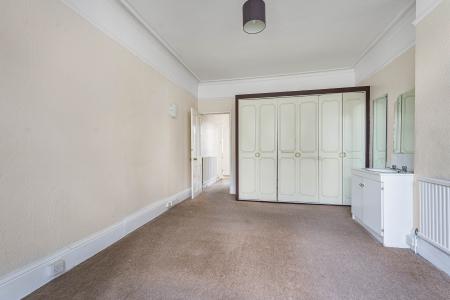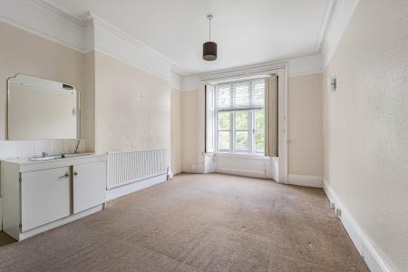 Upon entering the Apartment, you will find the main Living/Dining Room on your left, overlooking the front, with timber framed windows & original style window shutters. This room has retained its coving & picture rail too. Rightwards you will find the main Bedroom, also overlooking the front, again with timber framed windows, window shutters, coving & picture rail.