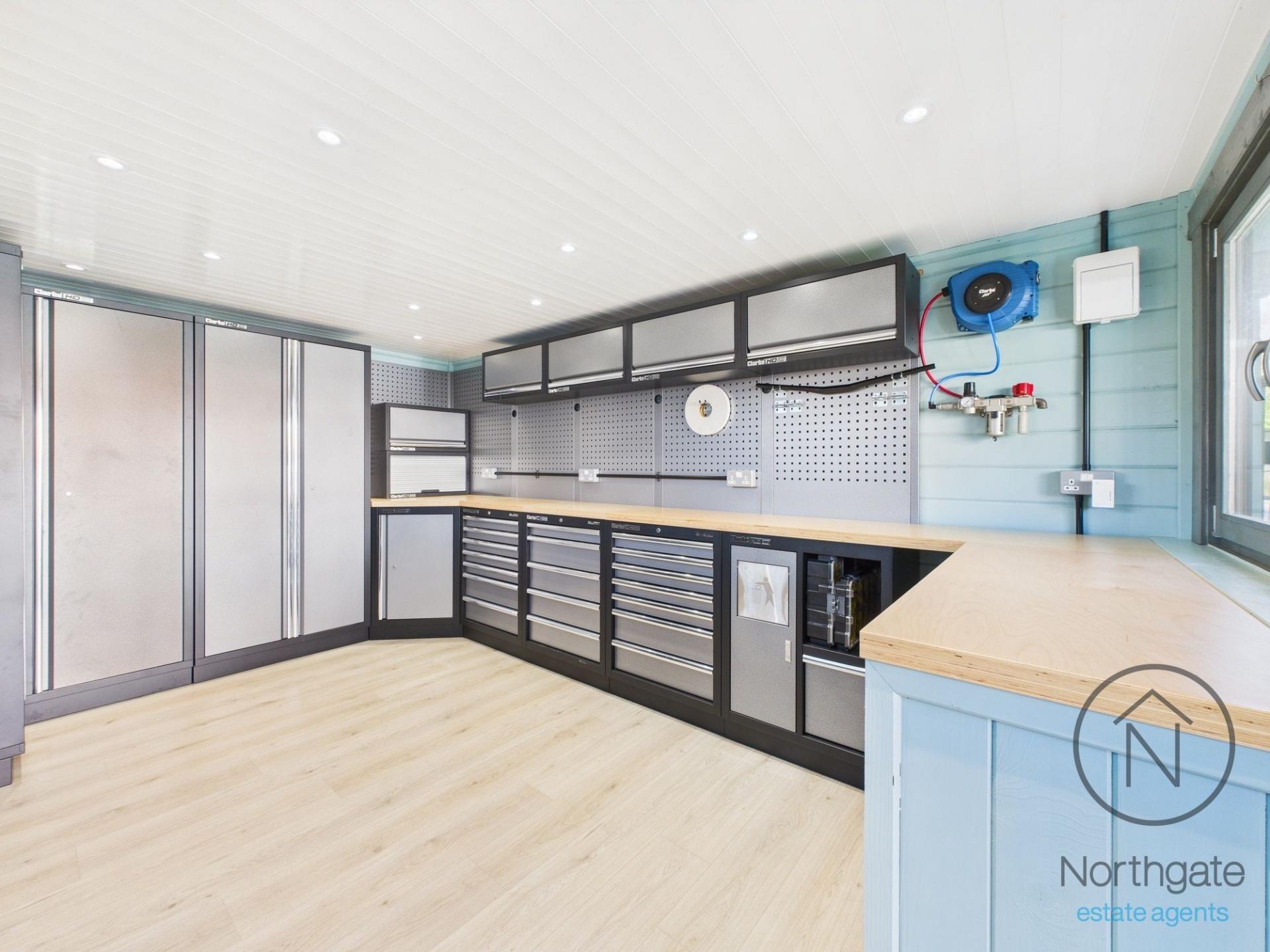 Externally: Stepping outside, the south facing rear garden offers a perfect retreat, benefitting from excellent sunlight throughout the day. It features a patio area, a well maintained turfed section, and a unique log cabin-ideal for use as a home office, gym, or relaxation space. Parking will never be an issue, as the property comes with two allocated parking bays, providing convenience and peace of mind to residents and their guests. Furthermore, the house benefits from being nestled in a serene village location, offering a sense of tranquillity and community spirit for its inhabitants.
