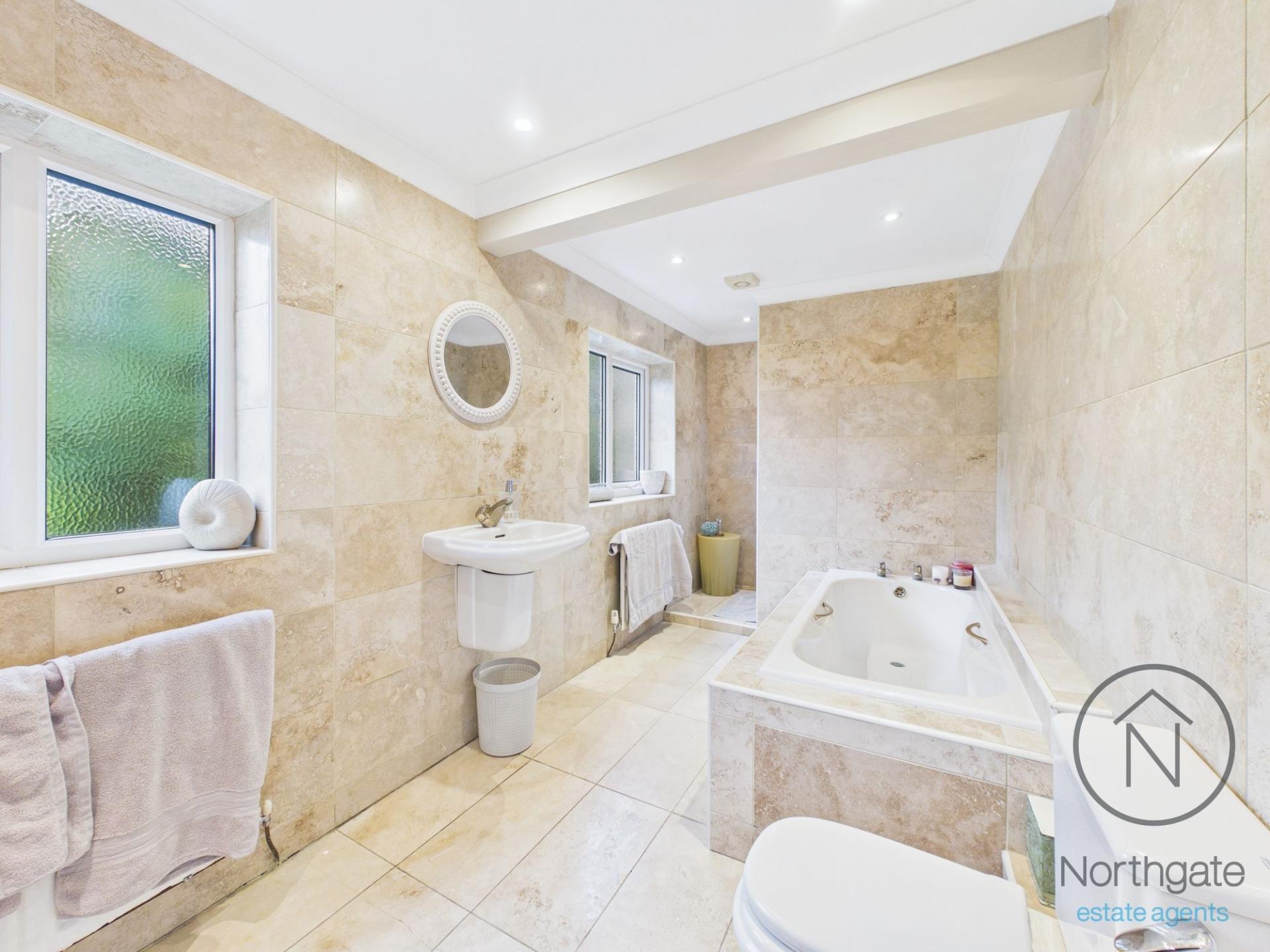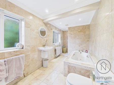 Upstairs, four well-proportioned bedrooms provide excellent flexibility for growing families or those working from home. One bedroom enjoys the benefit of a sleek en-suite shower room, while the impressive principal suite boasts a spacious walk-in wardrobe and access to a substantial Jack and Jill bathroom, delivering both luxury and convenience.