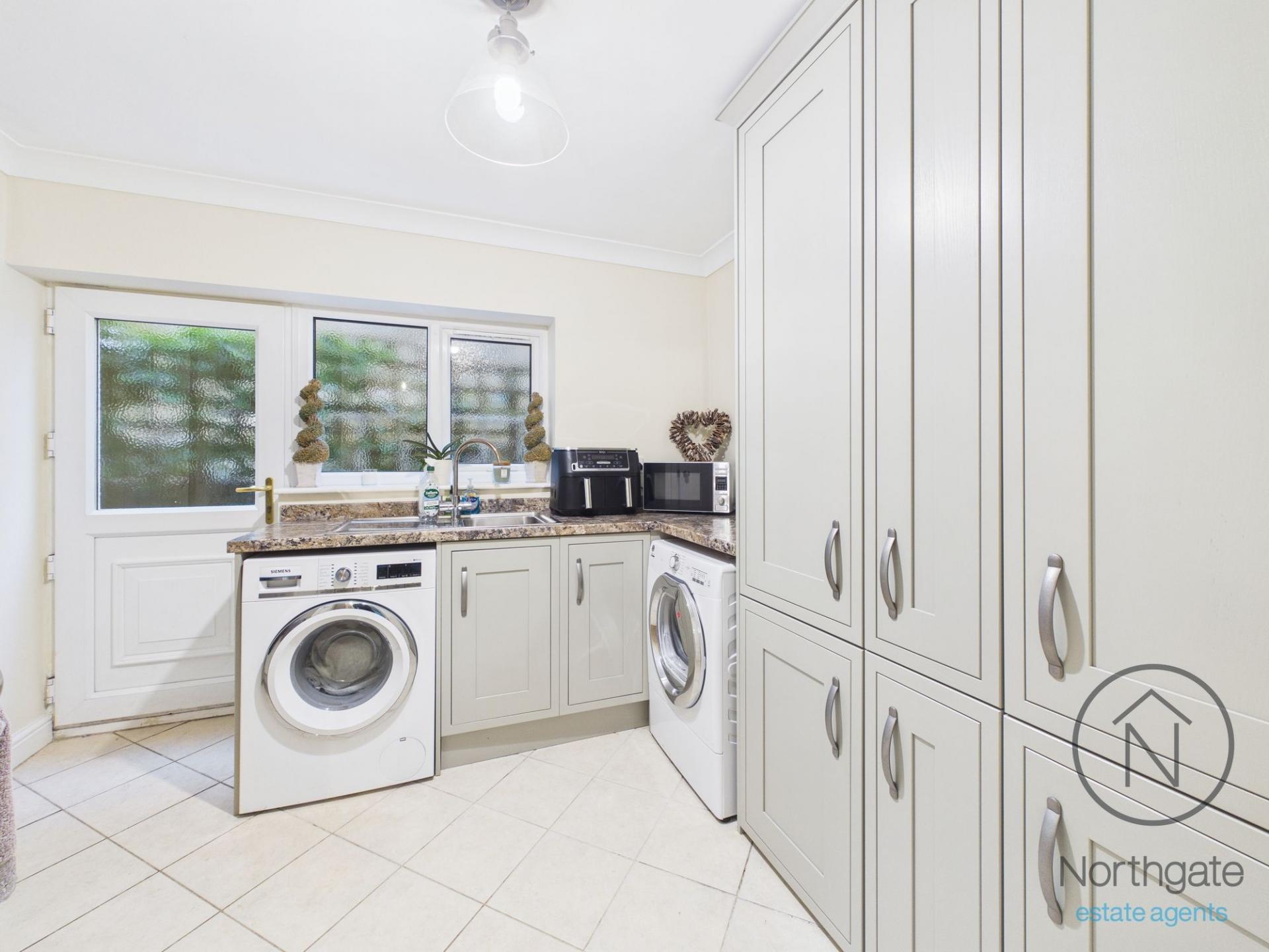 A separate utility room provides additional storage and laundry space, keeping the main kitchen area clutter-free, while a convenient downstairs WC adds everyday practicality for family life and visiting guests.