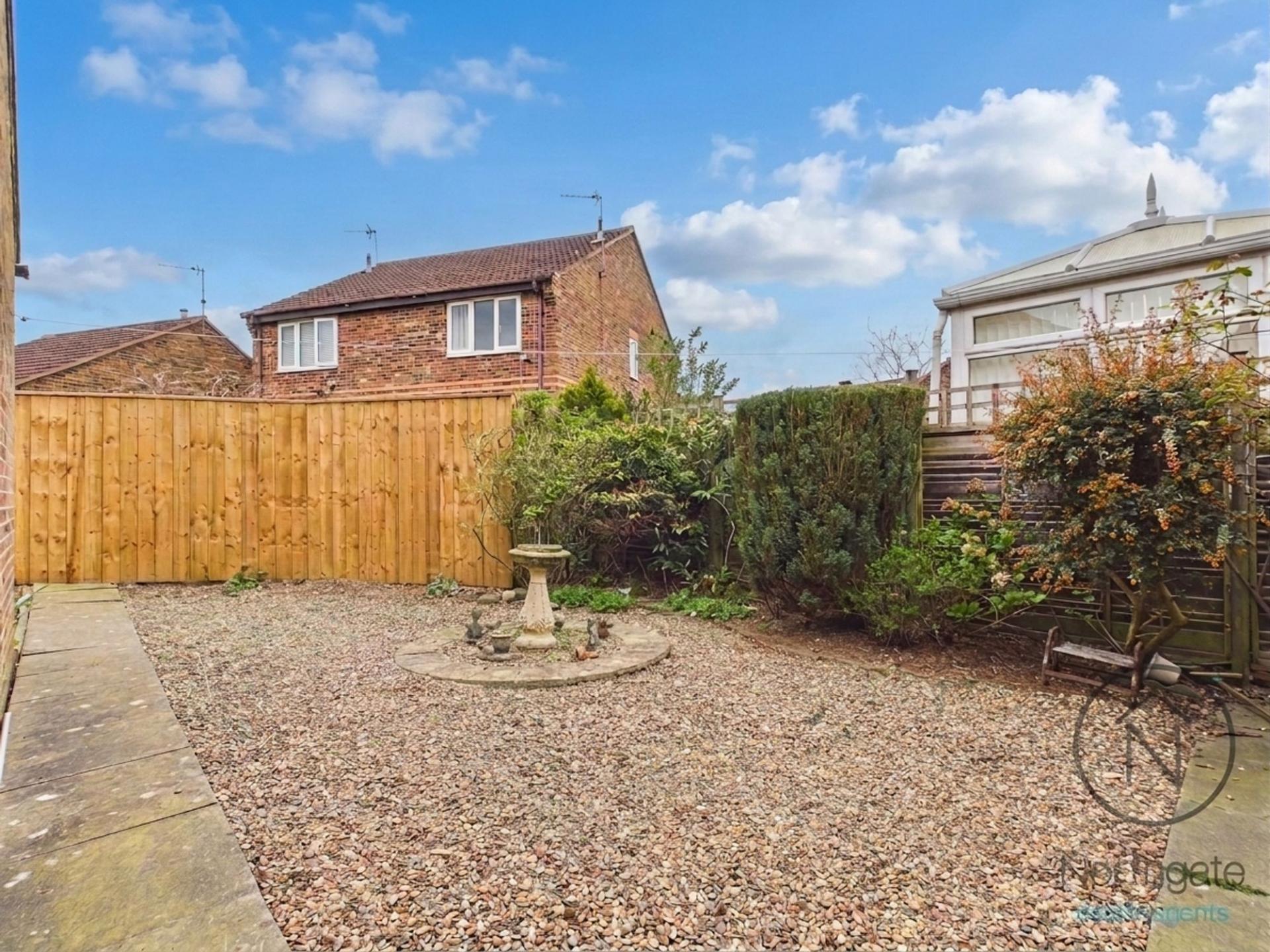 - Private, well-maintained rear garden with detached garage