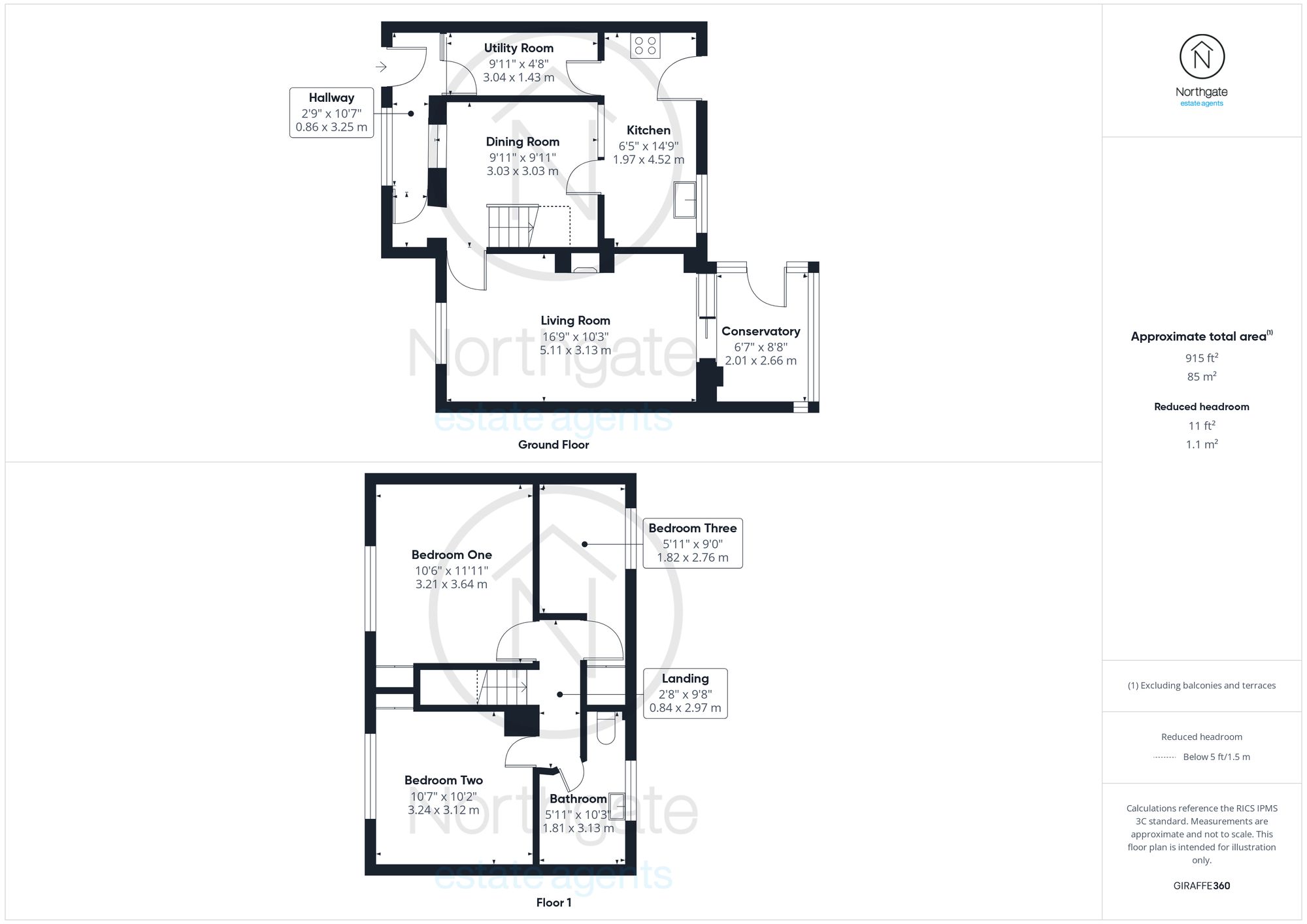 The ground floor features a spacious living room, dining room, fitted kitchen, storage area, and conservatory overlooking the garden. Upstairs, there are three well-proportioned bedrooms and a family bathroom.