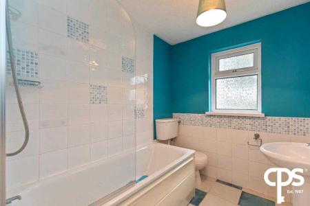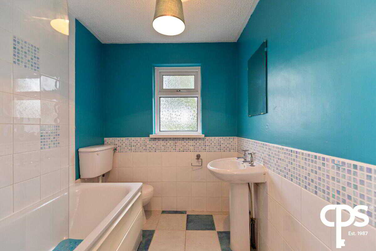 Upstairs, the first floor offers three well-proportioned bedrooms and a white bathroom suite.