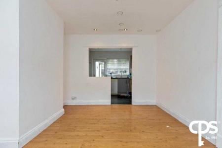 Spacious dining area with laminate wooden flooring, open-plan through to kitchen.