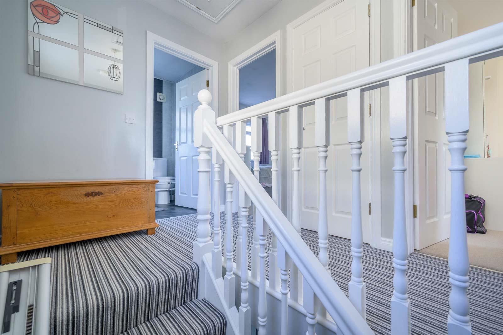 Landing - Shelved hotpress with lagged copper cylinder, access to roofspace.