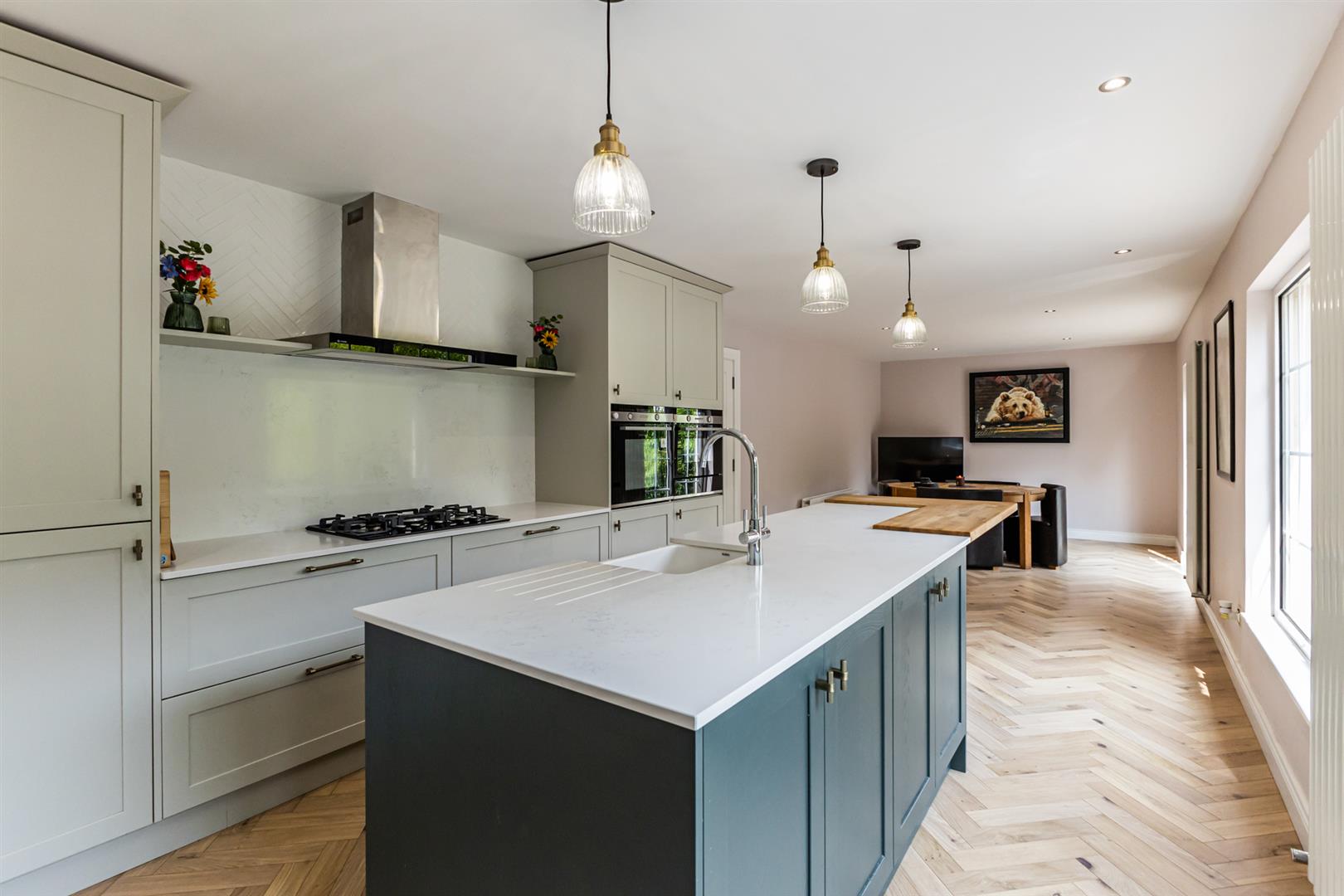 - Bright Spacious Open Plan Kitchen Living Dining with Sleek Fully Fitted Kitchen with Many Integrated Appliances and Outlook Over the Enclosed Rear Gardens