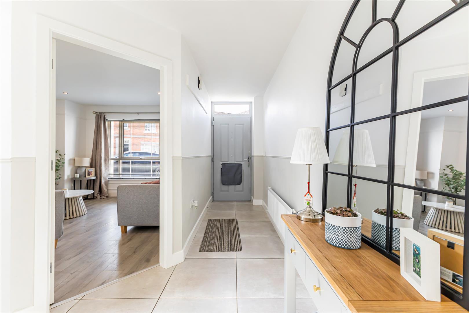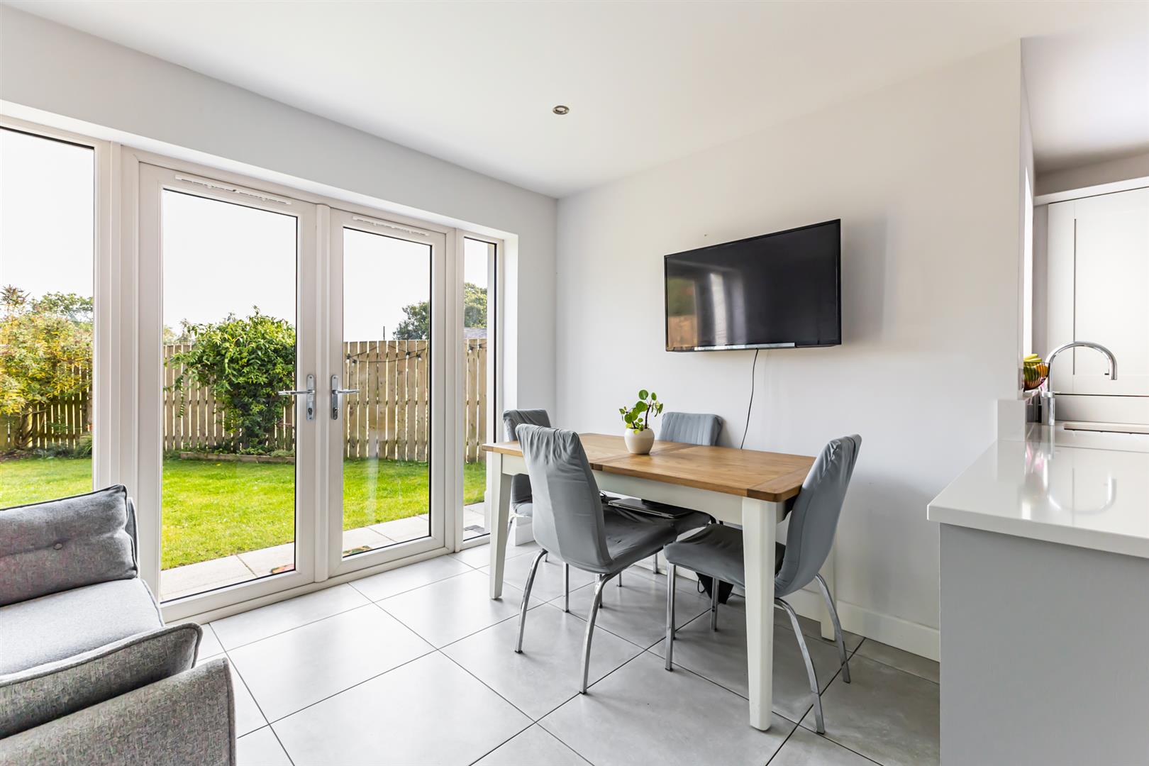 Internally, the accommodation is both bright and stylish, with a welcoming family lounge featuring a contemporary electric fire creating a cosy yet modern focal point. The open plan kitchen, living, dining area is ideal for both everyday family life and entertaining. The fully fitted kitchen boasts integrated appliances and a sleek, functional layout, opening to dining and casual living area.