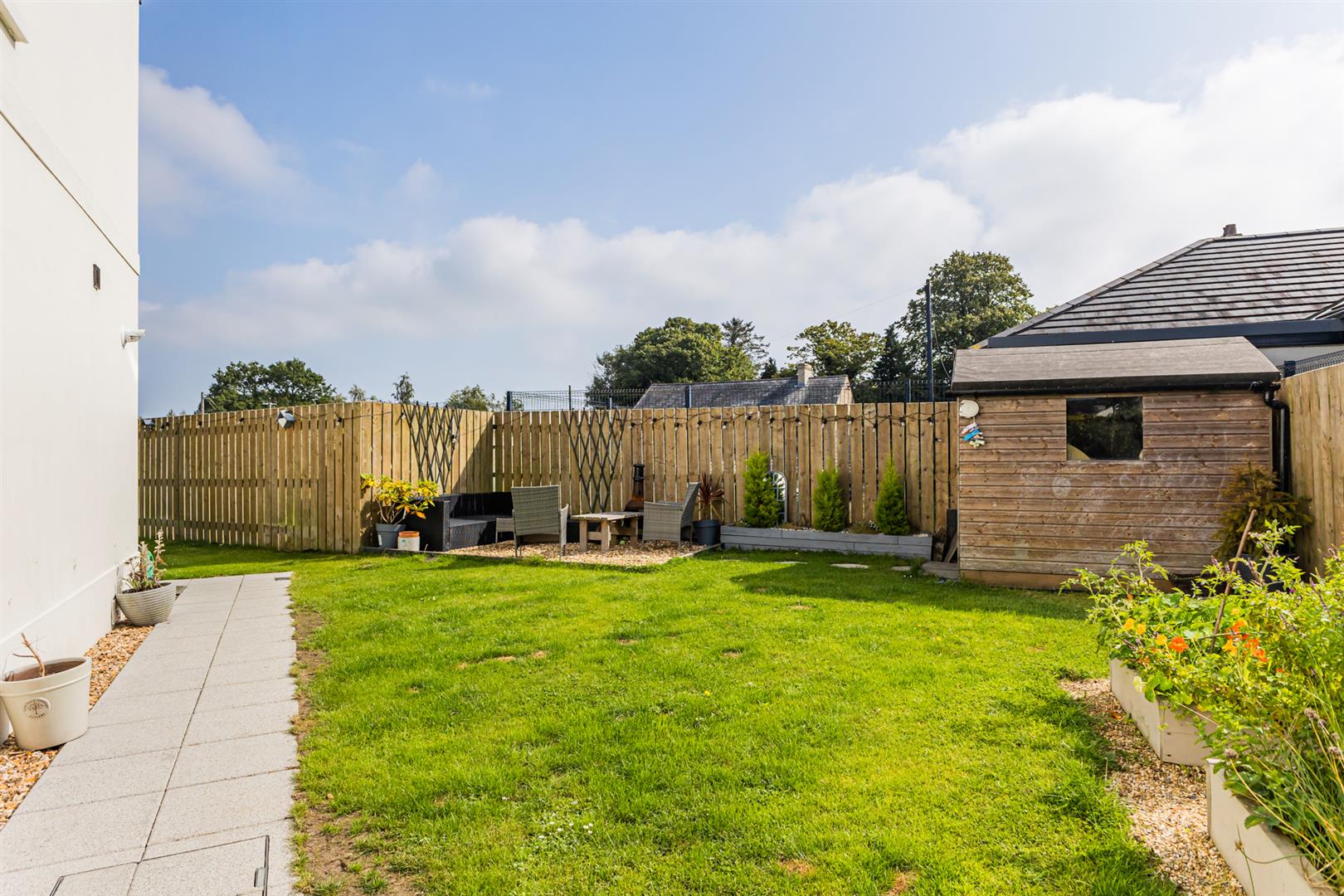 Externally, the property continues to impress. The rear garden is fully enclosed and well-maintained featuring lawned areas, paved patio areas, raised flowerbeds and mature planting all providing the perfect spot to relax and unwind.