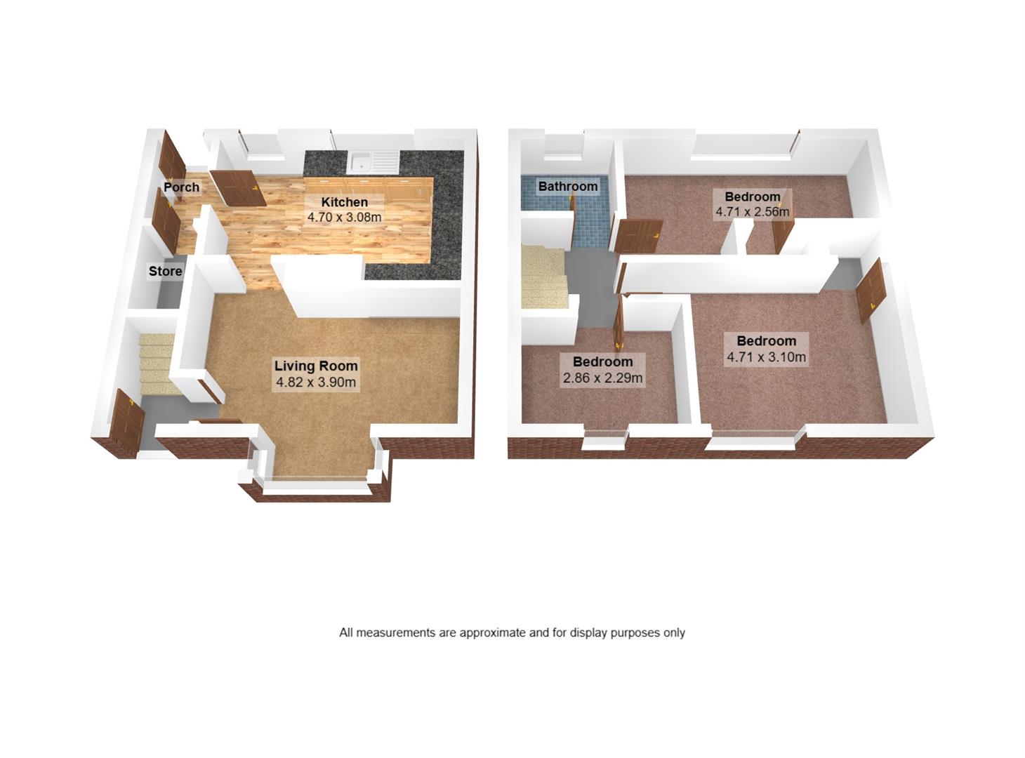 The accommodation comprises a bright living room, a separate kitchen, and a bathroom with a three-piece suite. Upstairs, there are three well-proportioned bedrooms, providing flexible space suitable for families, couples, or investors.
