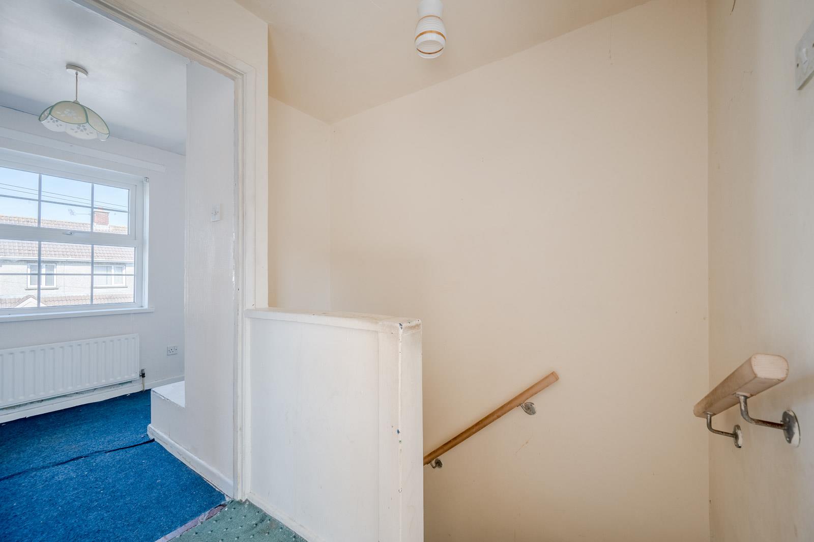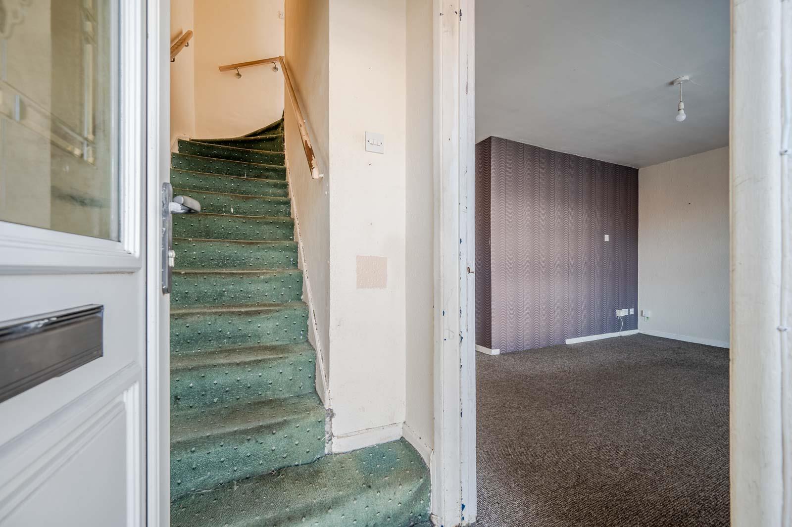 Entrance Hall - The hallway leads smoothly to the staircase, which is carpeted and features a handrail. This area connects the ground floor rooms and provides access to the upper floor, maintaining a practical flow throughout the home.