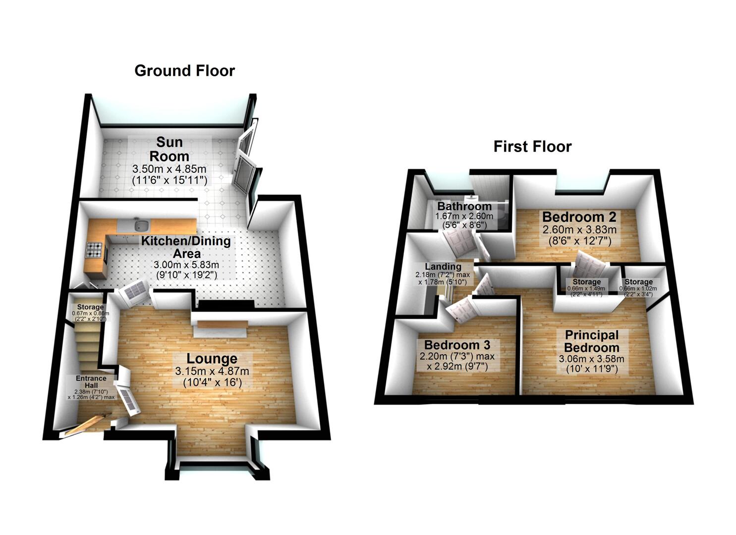 Internally, the property boasts a welcoming family lounge with bay window and feature open fire, perfect for relaxing on cold winter evenings. The spacious open plan kitchen dining area is ideal for modern family life and entertaining, and opens into a bright and airy sunroom, providing an additional versatile living space with views over the garden. Upstairs there are three well proportioned bedrooms and a family bathroom. The home benefits from oil fired central heating and uPVC double glazing throughout.