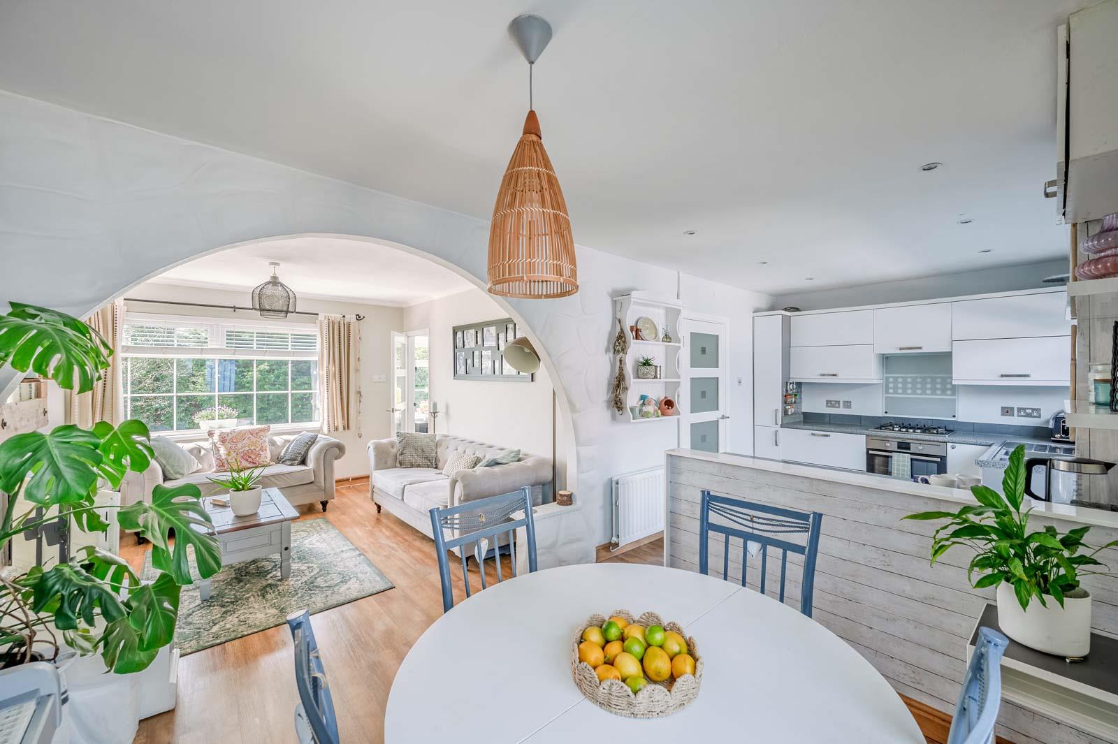 - Open-plan custom-fitted kitchen that has been crafted to a high specification, with a stylish dining area perfect for hosting gatherings and creating cherished family memories