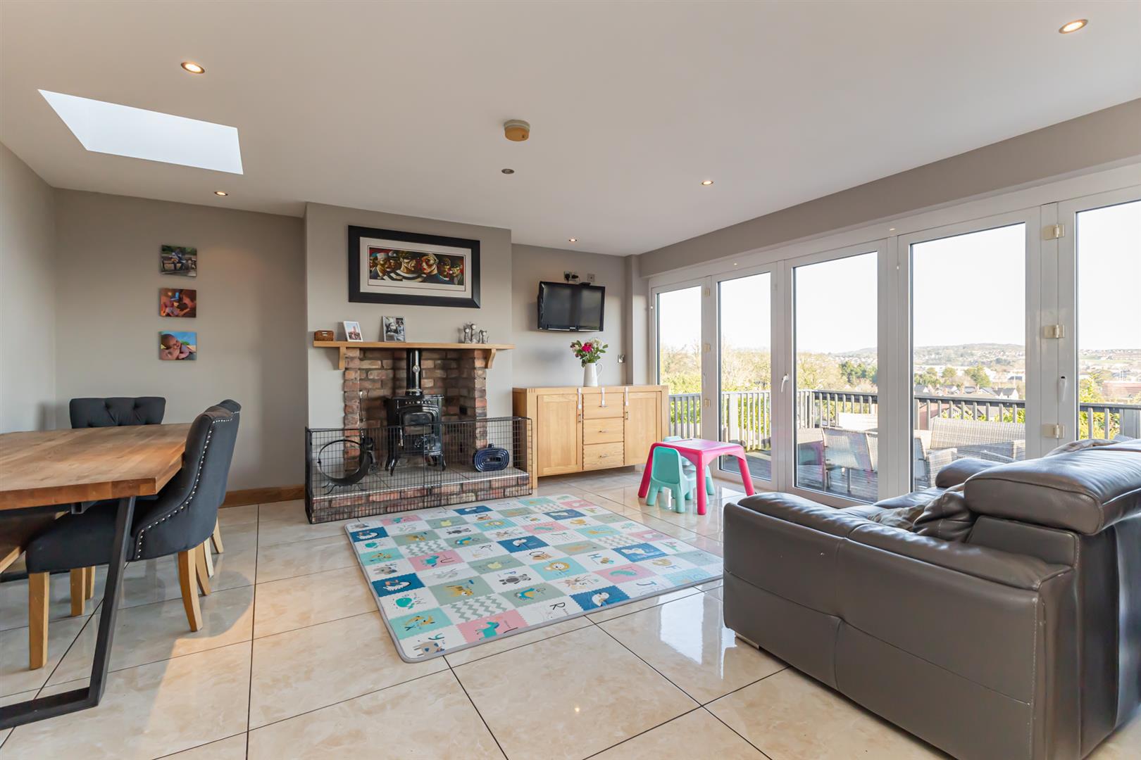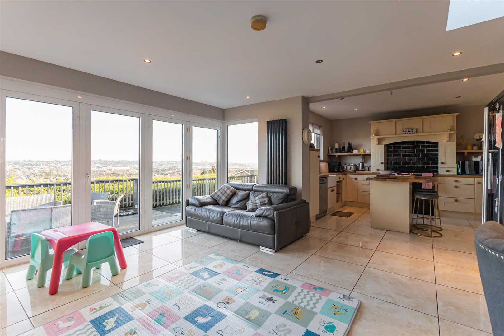 - Open Plan Kitchen / Living / Dining that Opens to Decked Area via Full Length Bi-Folding Doors, Fully Fitted Kitchen with Island and Multi Burning Stove