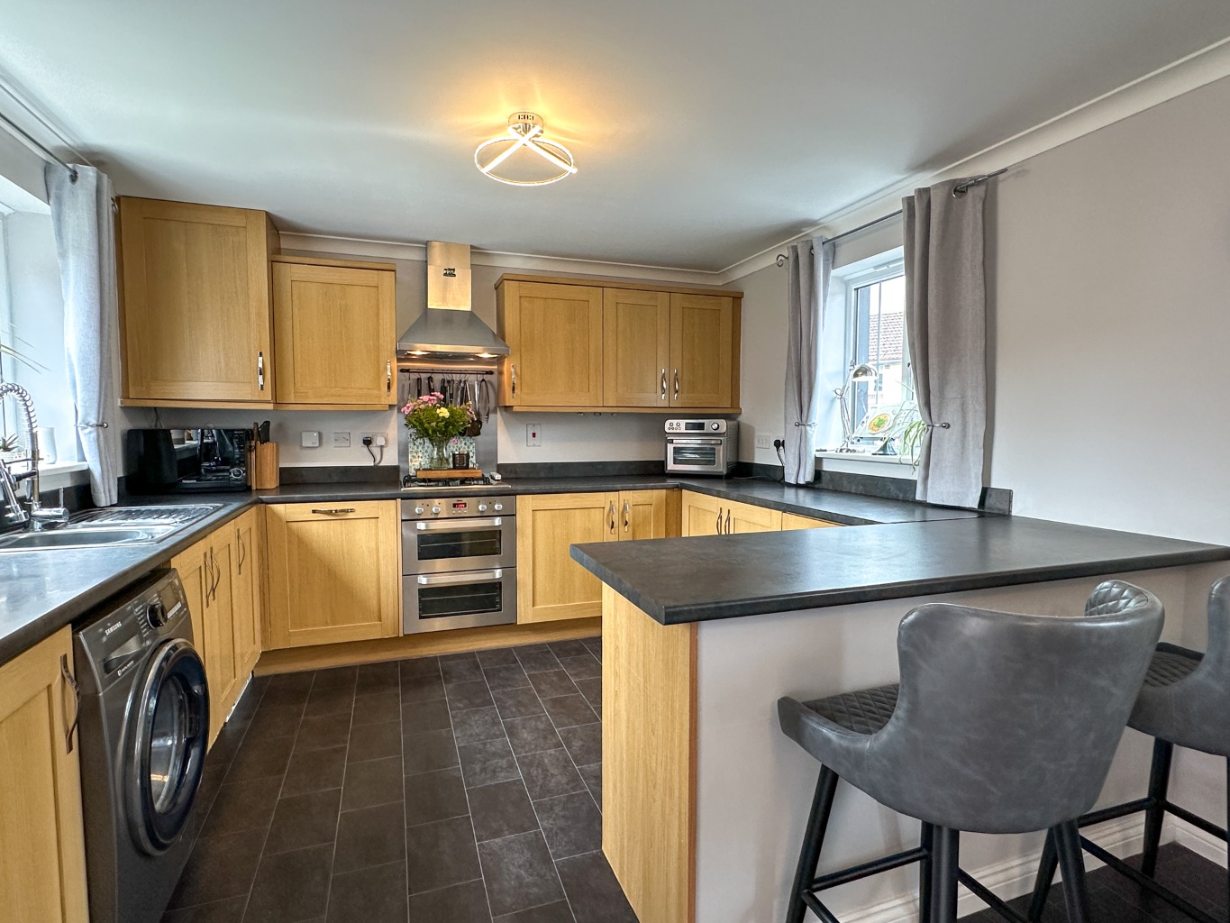 - Dual Aspect Kitchen/Breakfast Room with a Range of Built-in Appliances & Twin Opening Doors Leading out onto the Rear Garden Patio