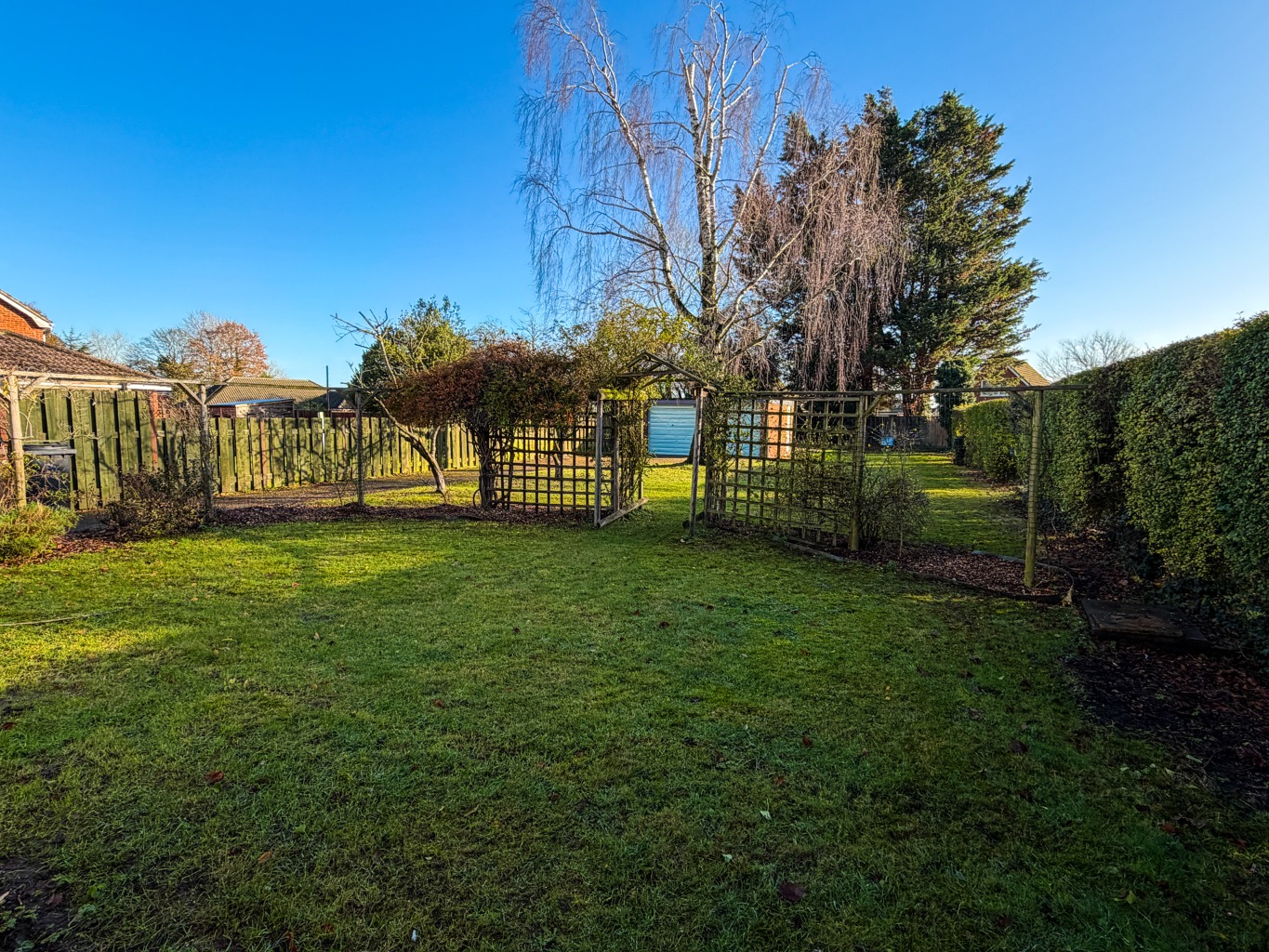- South Facing Rear Garden with the Driveway leading to the Double Garage