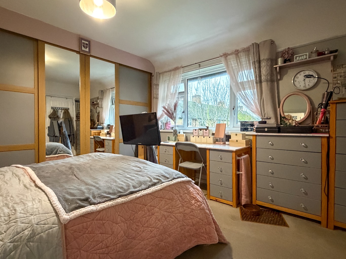 - Master Bedroom with a Built-in Wardrobe Cupboard & a Range of Fitted Wardrobe Cupboards & Bedroom 2 currently Used Home Office with Storage Recesses