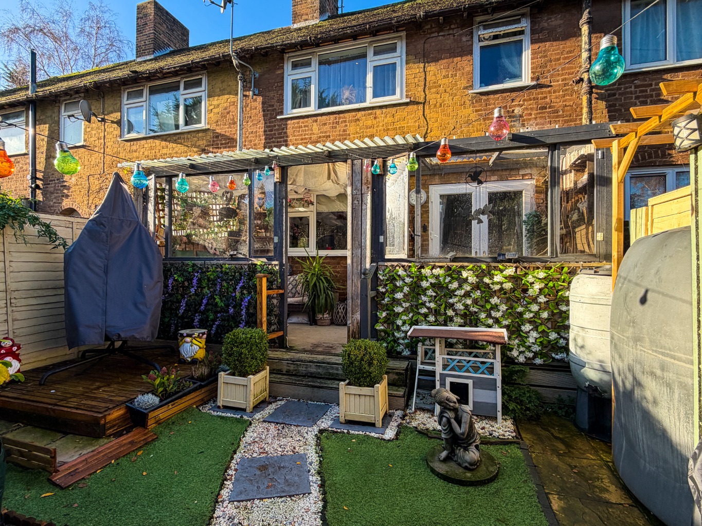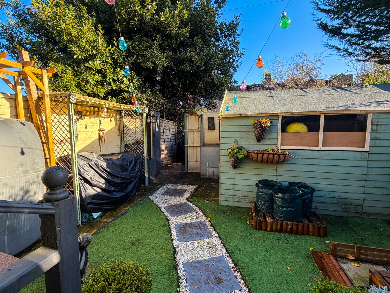 - Enclosed Rear Garden with Garden Shed, Artificial Grass and Seating Area